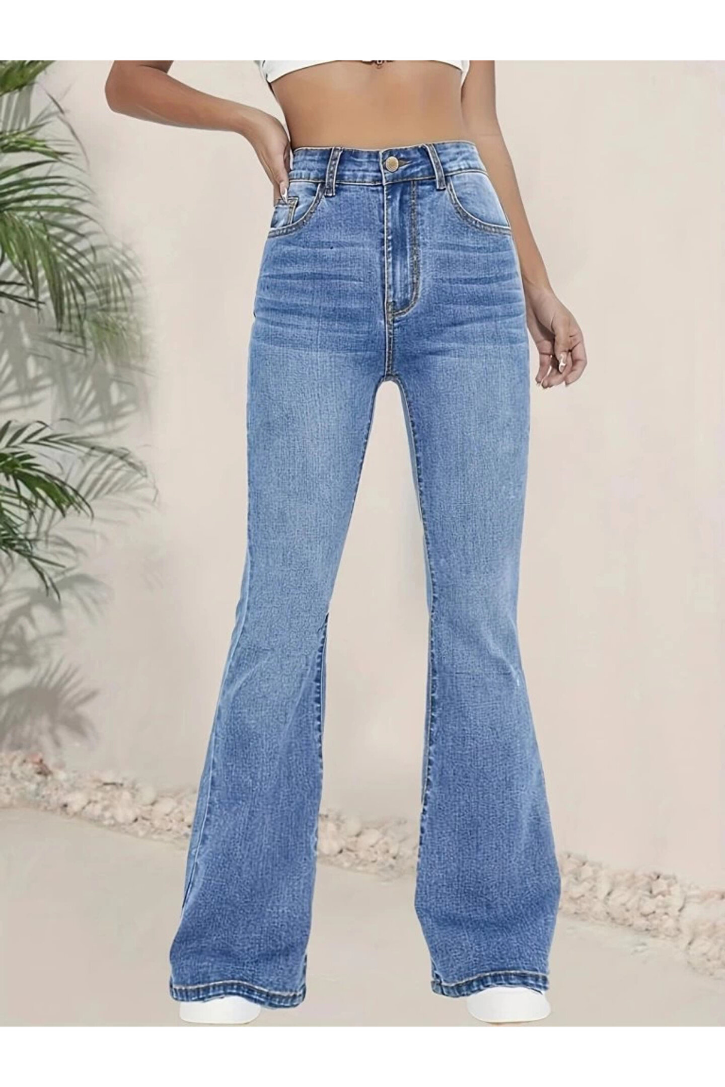 Kadın Yüksek Bel İspanyol Paça Kot Pantolon