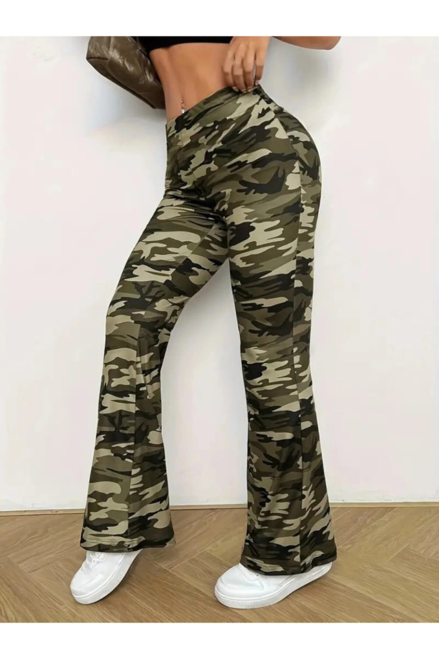 Kadın Yüksek Bel Kamuflaj Desenli Dalgıç Tayt