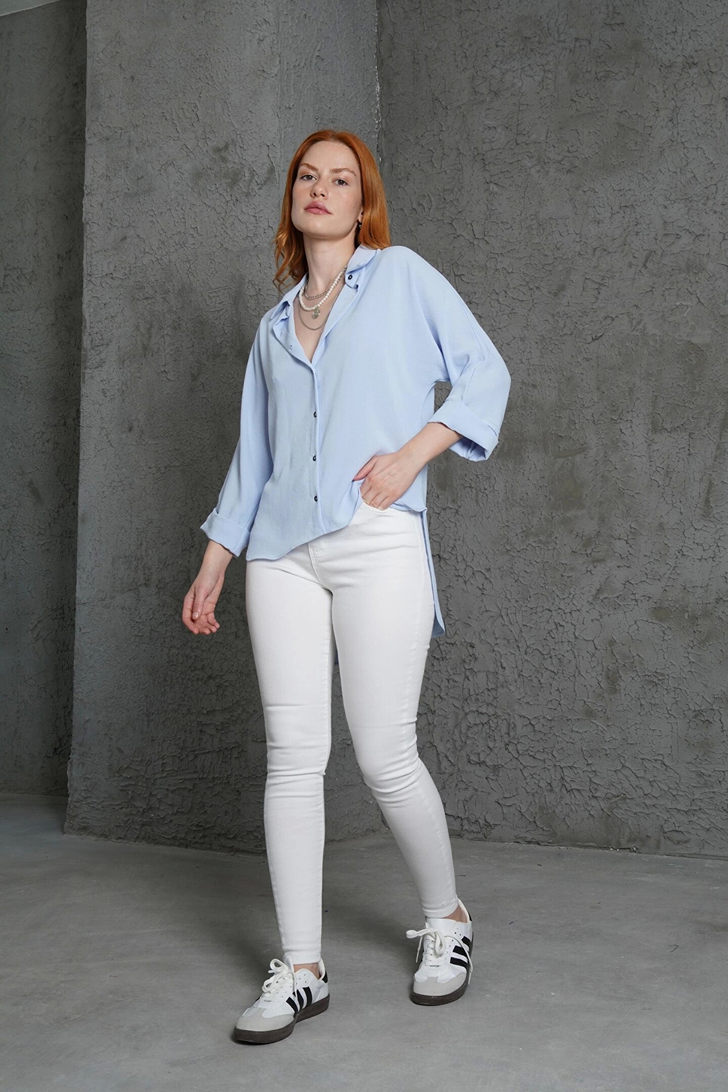 Kol Katlama Detaylı Bebe Mavi Gömlek