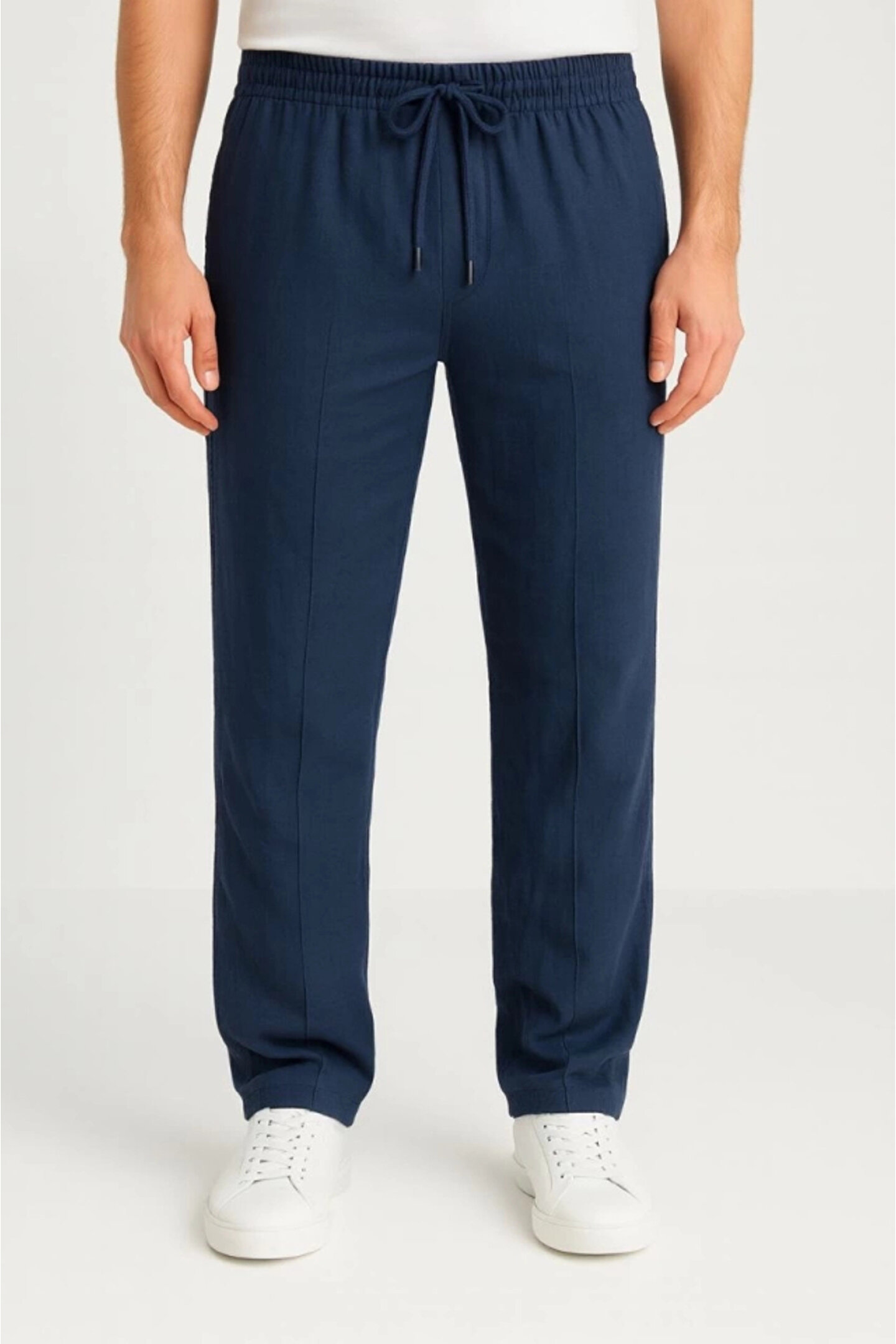 Erkek Keten Pantolon – Cepli, Beli Lastikli Ve Bağcıklı, Nefes Alan Rahat Kalıp, Yazlık Ve Baharlık Günlük Giyim, Şık - Konforlu Boru Paça Model - Lacivert