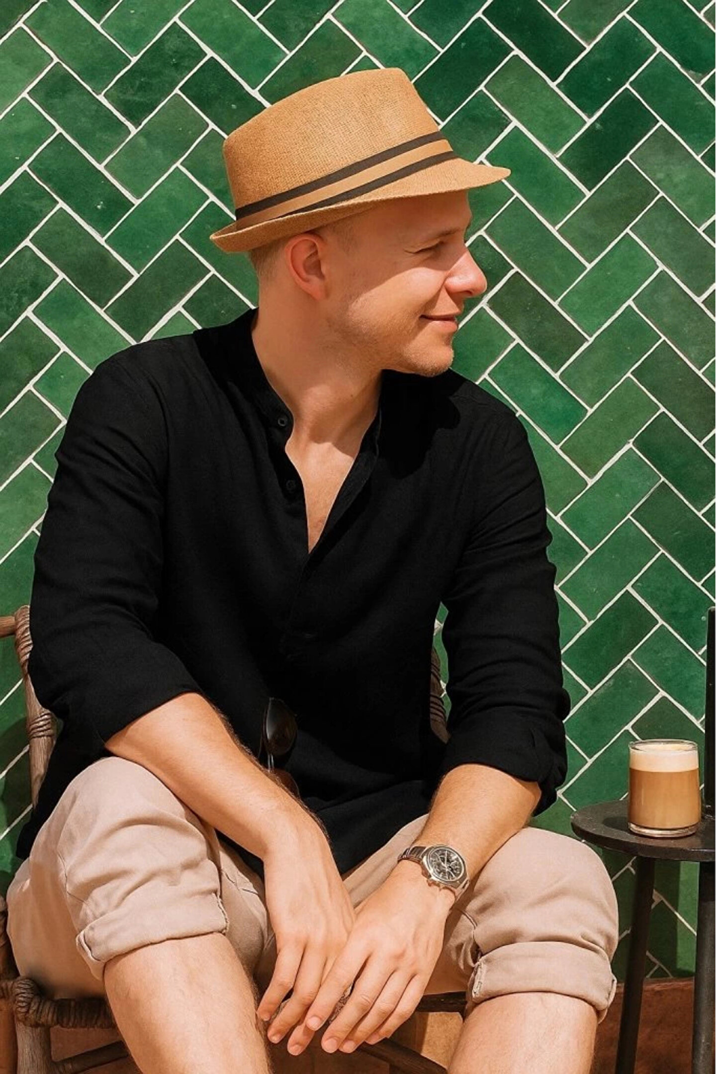 Camicia musulmana da uomo a maniche lunghe con colletto e bottoni