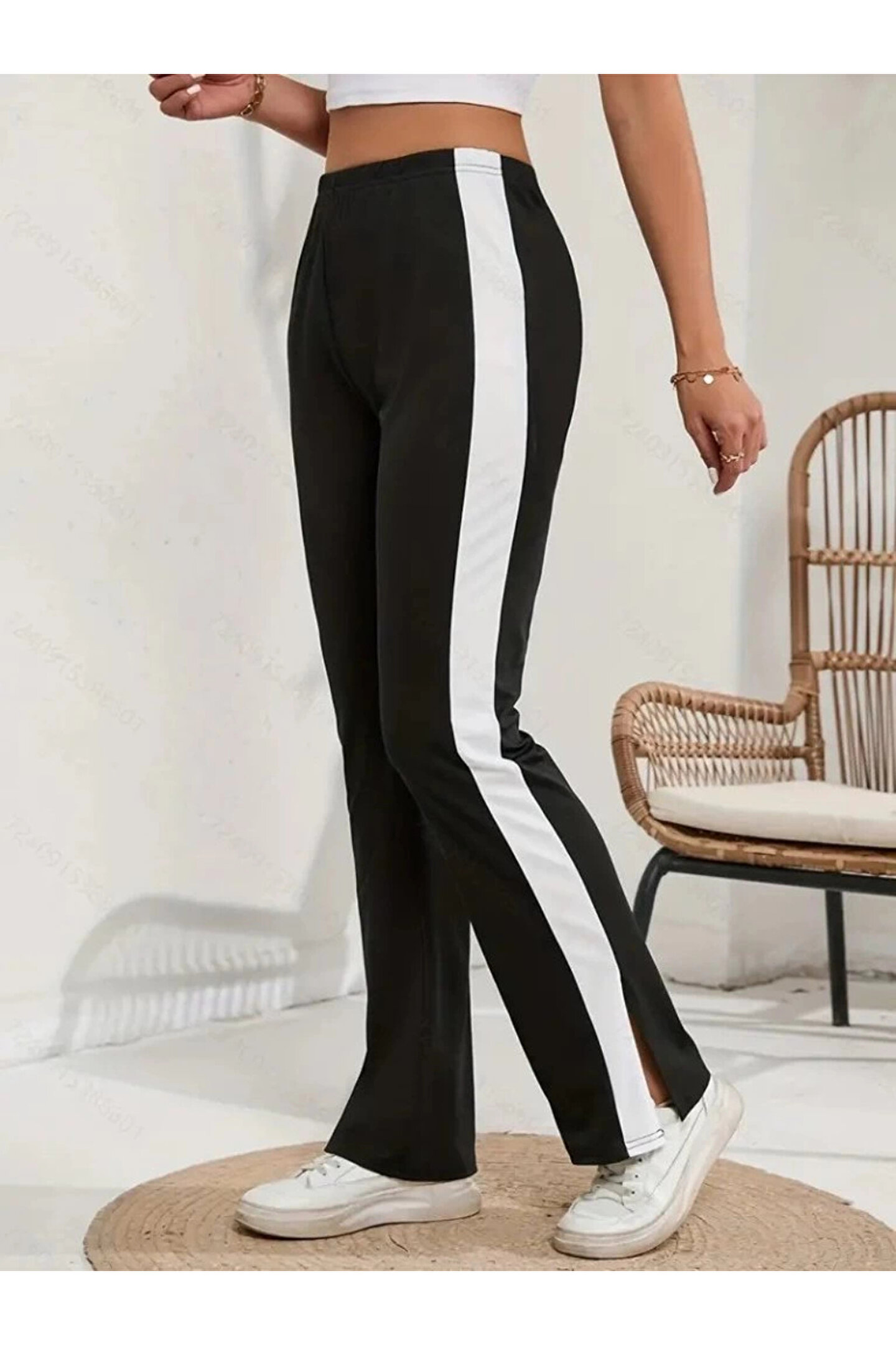 Kadın Yüksek Bel Yan şerit Detaylı Yırtmaçlı Viskon Iki Iplik Pantolon