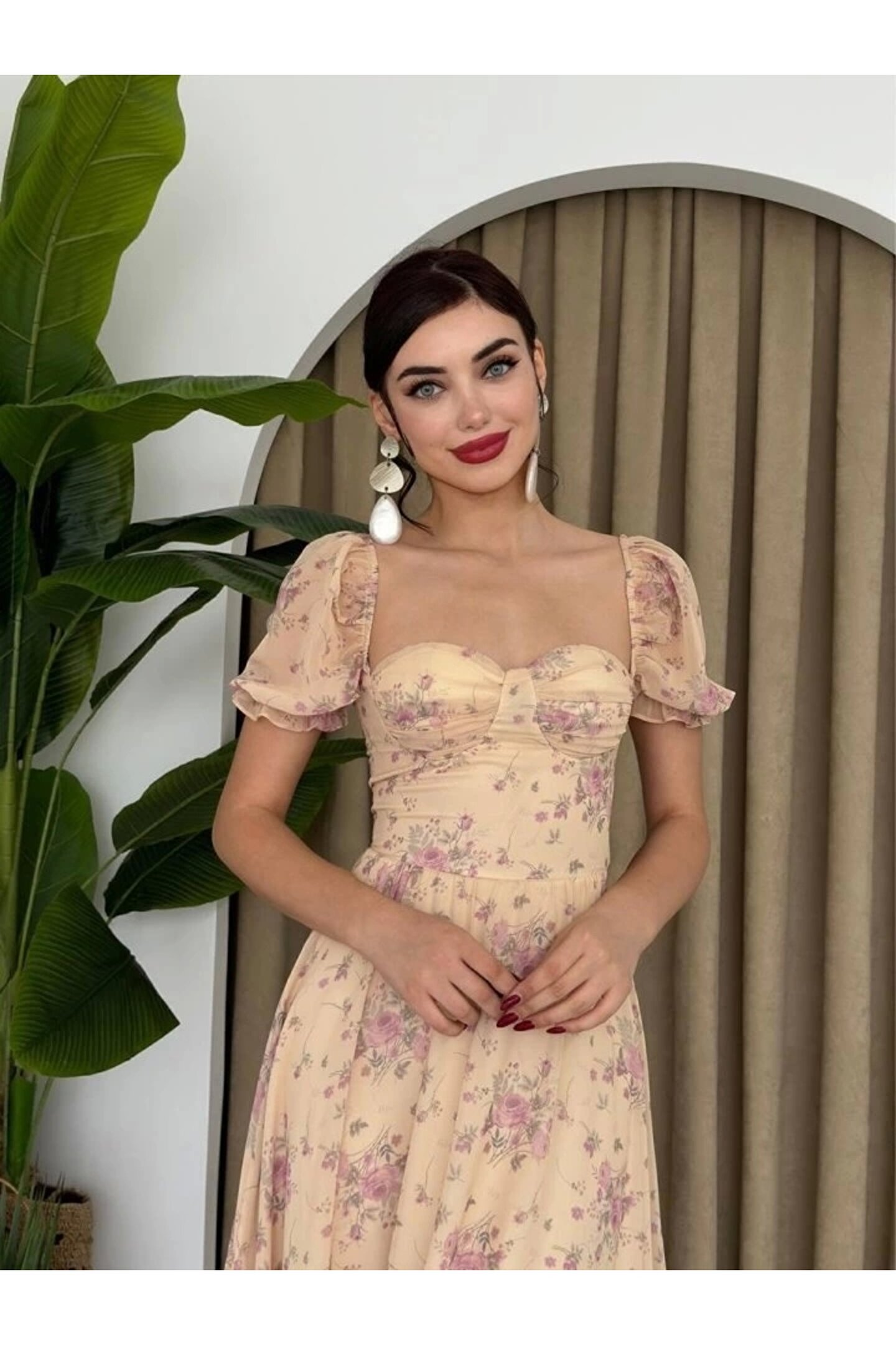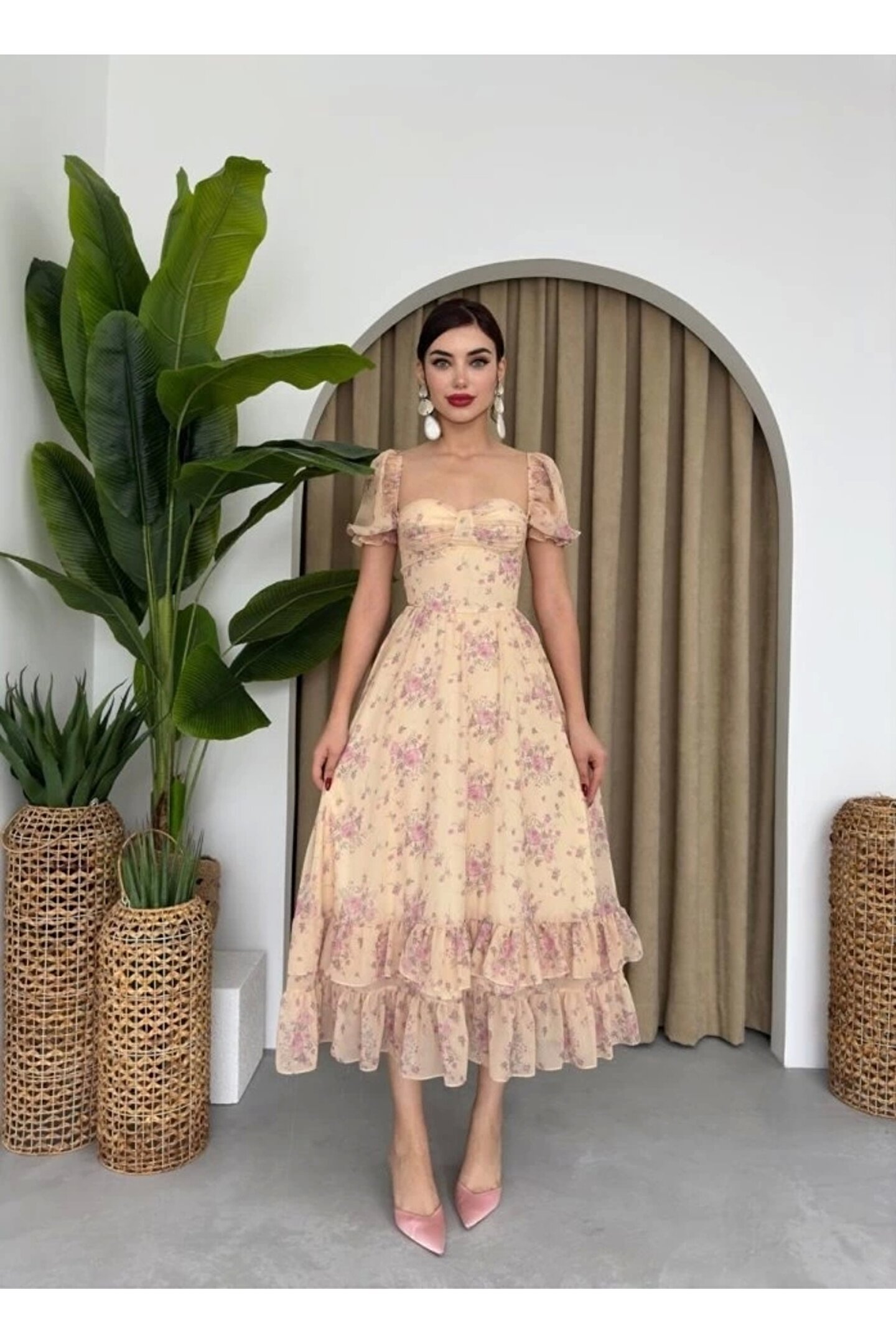 ŞİFON KUMAŞ DİJİTAL DESEN BASKILI ELBİSE