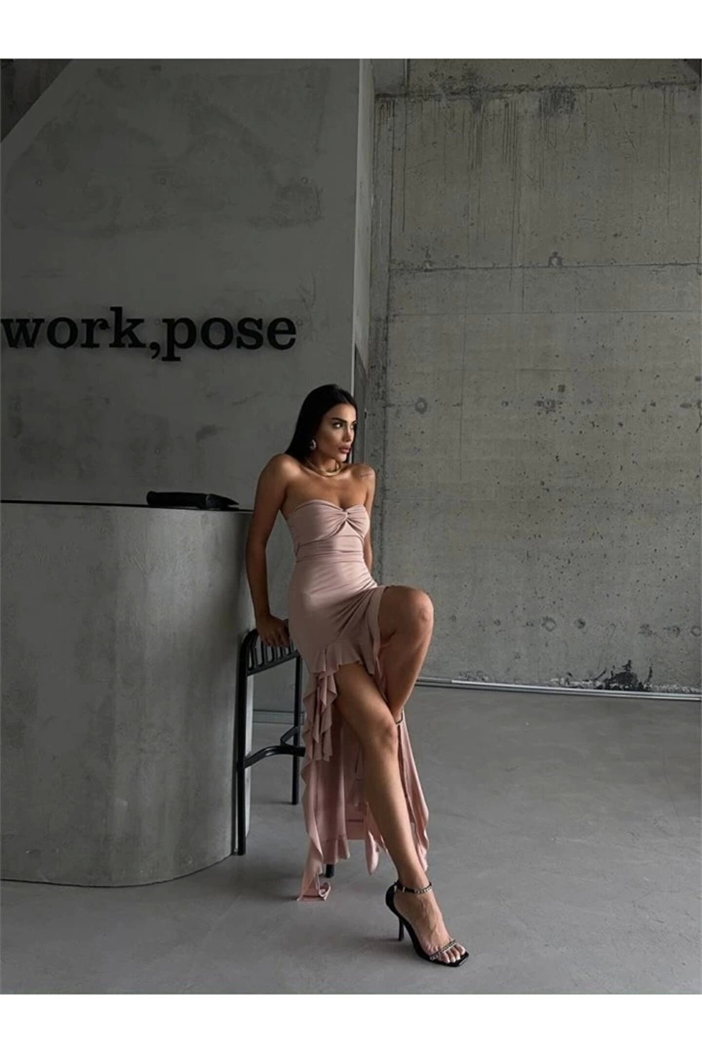 STRABLEZ SANDY ELBİSE YANLARI KATLI - Bej