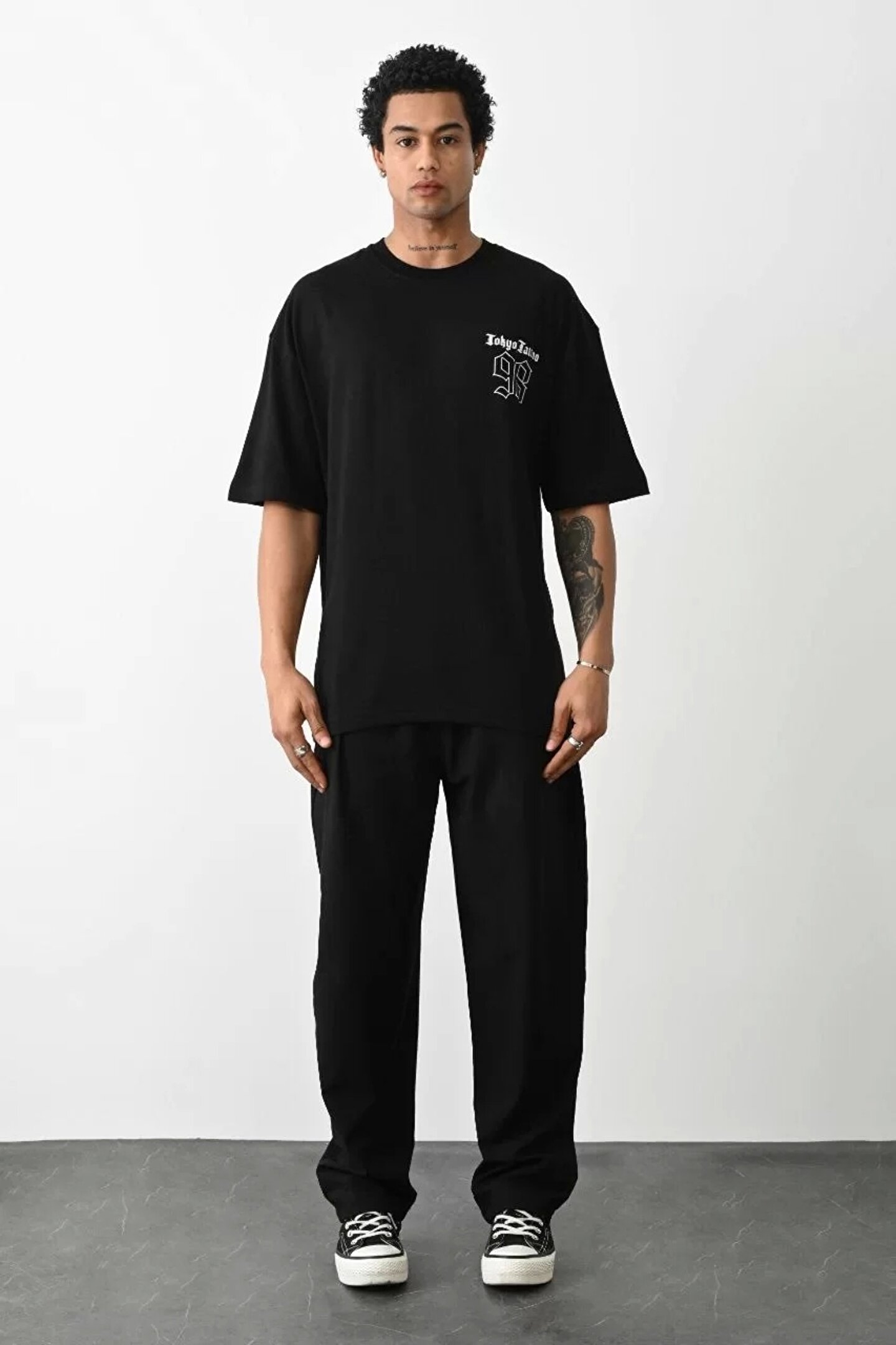 Unisex Baskılı Oversize T-Shirt - Siyah