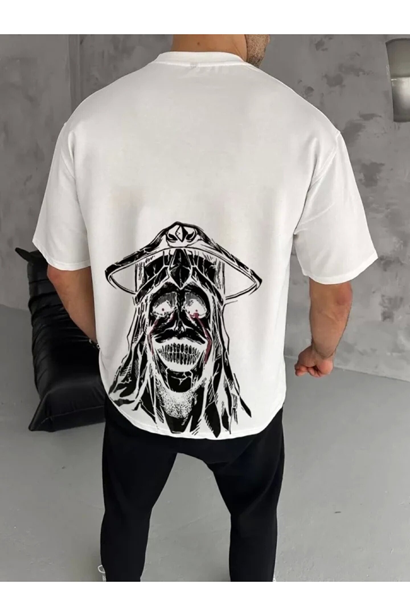 Silerra Unisex Bisiklet Yaka Baskılı Oversize T-Shirt - Beyaz
