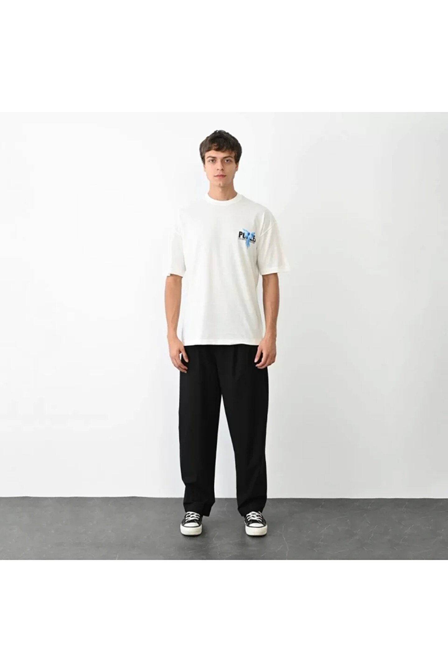 Silerra Unisex Bisiklet Yaka Baskılı Oversize T-Shirt - Beyaz