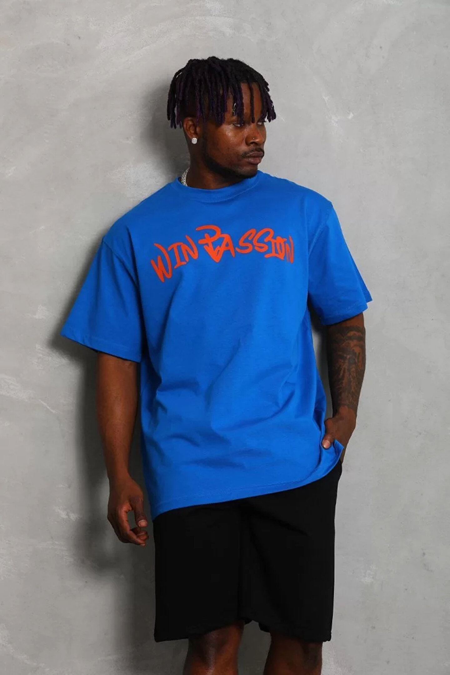 Unisex Oversize Baskılı Bisiklet Yaka T-Shirt - Mavi