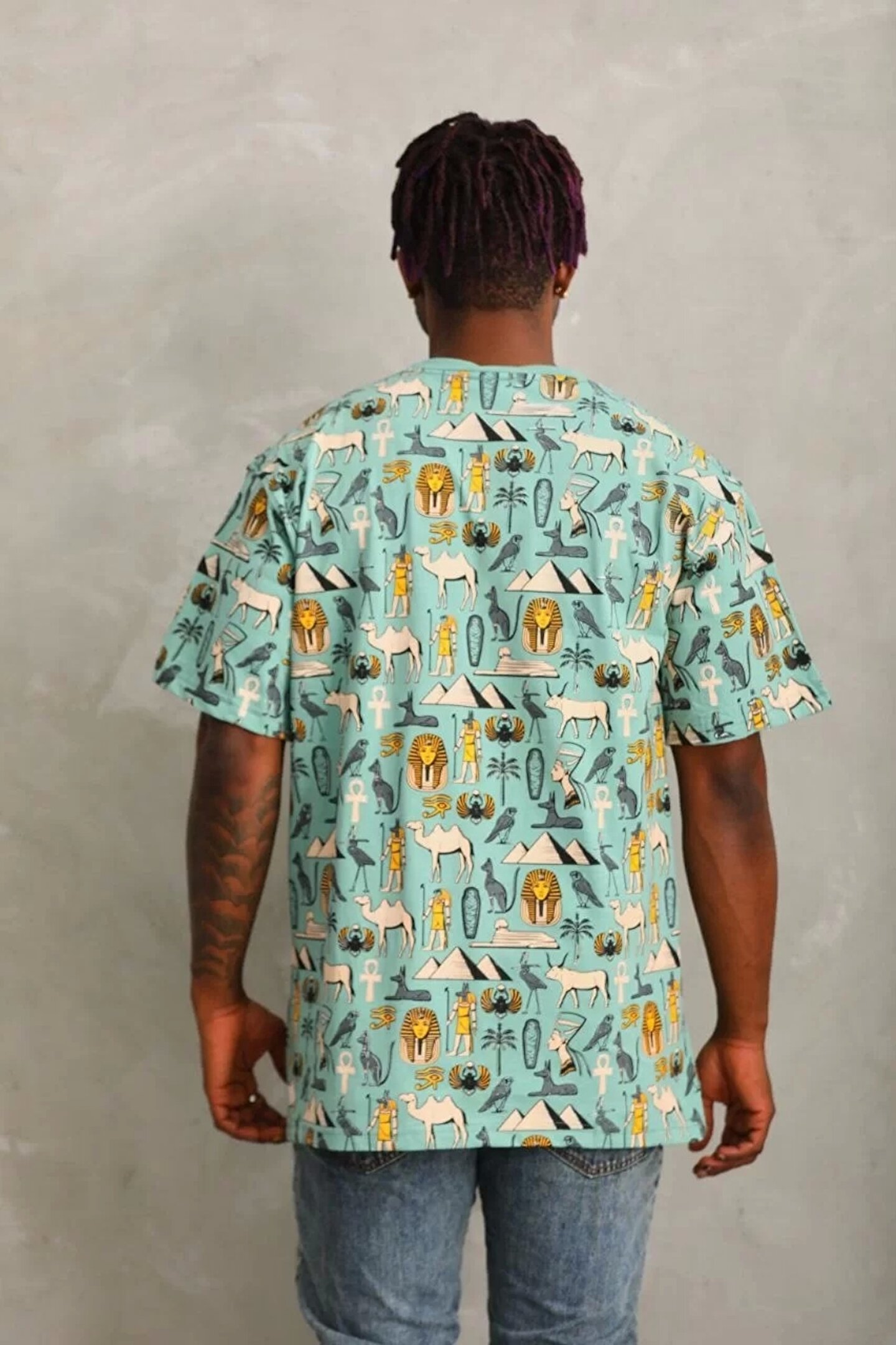 Unisex Oversize Baskılı Bisiklet Yaka T-Shirt - Mint Yeşili