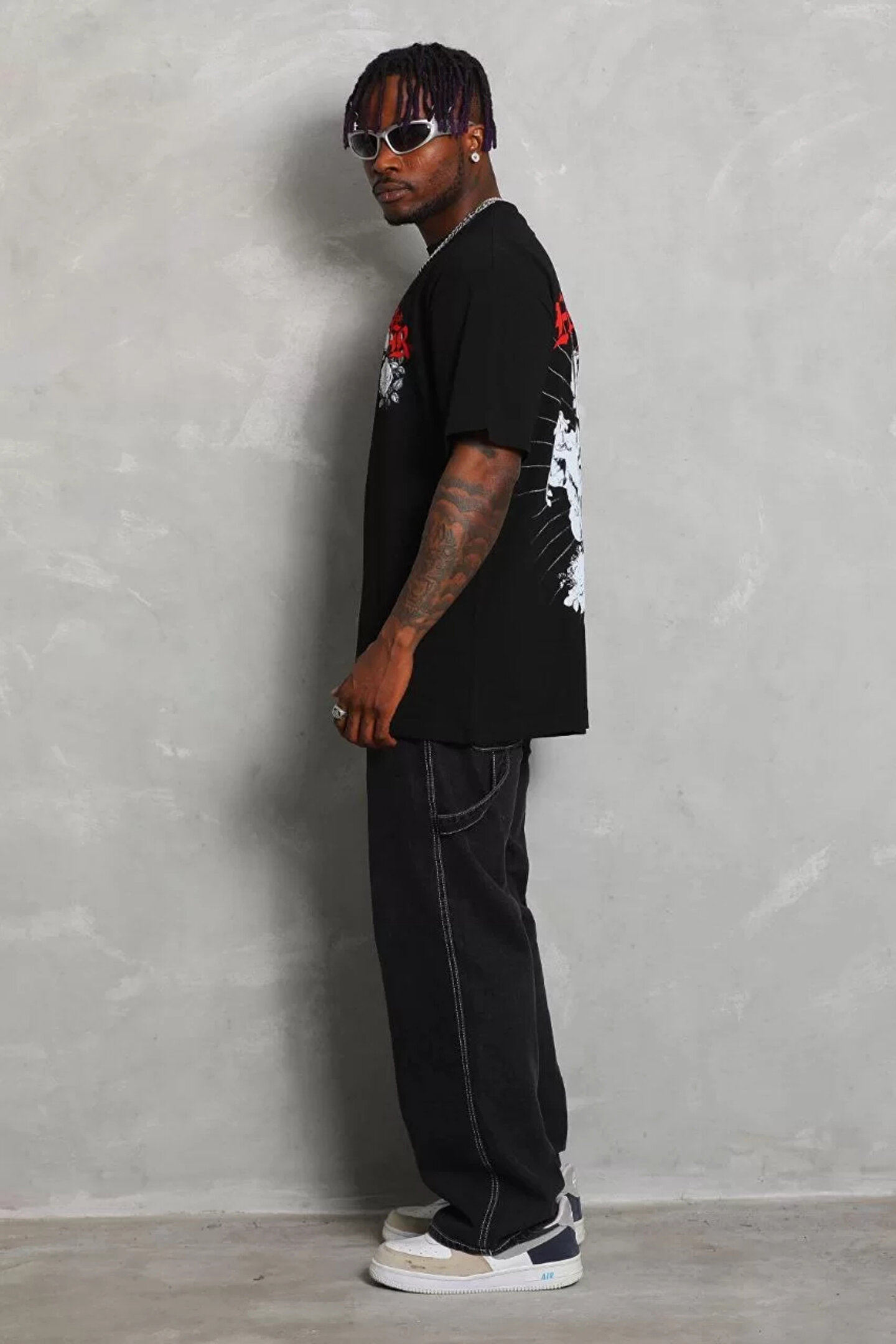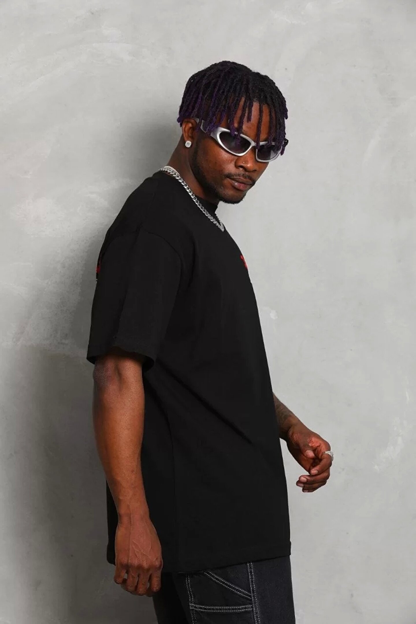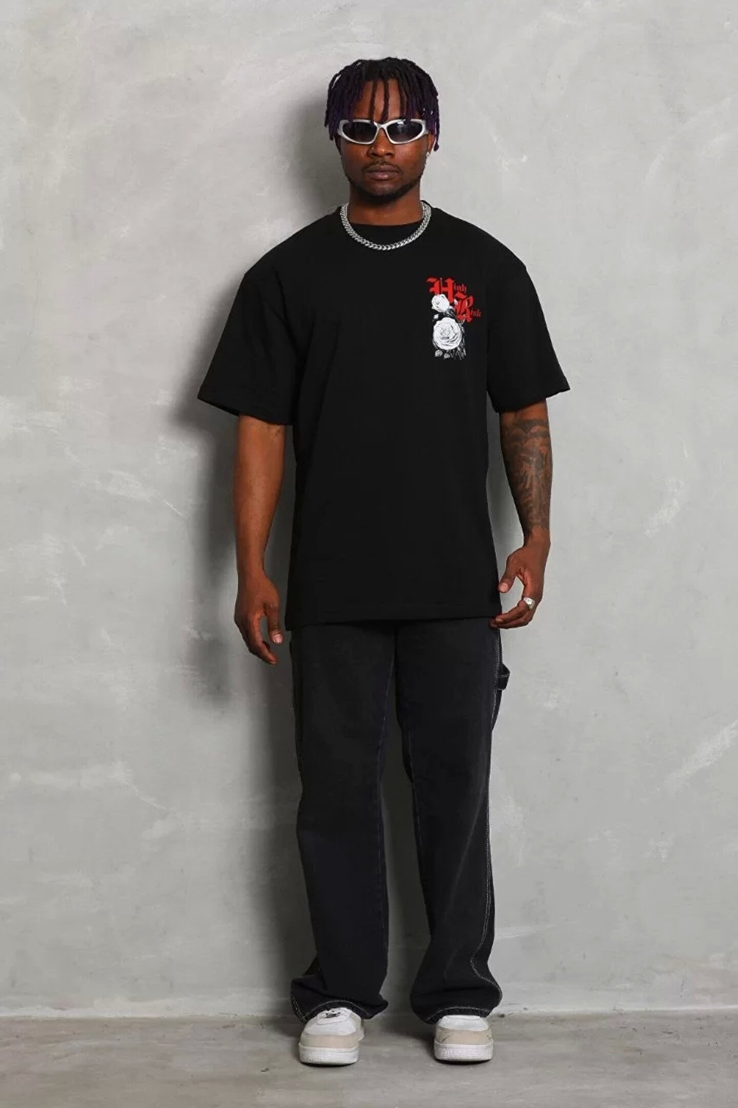 Silerra Unisex Oversize Baskılı Bisiklet Yaka T-Shirt - Siyah