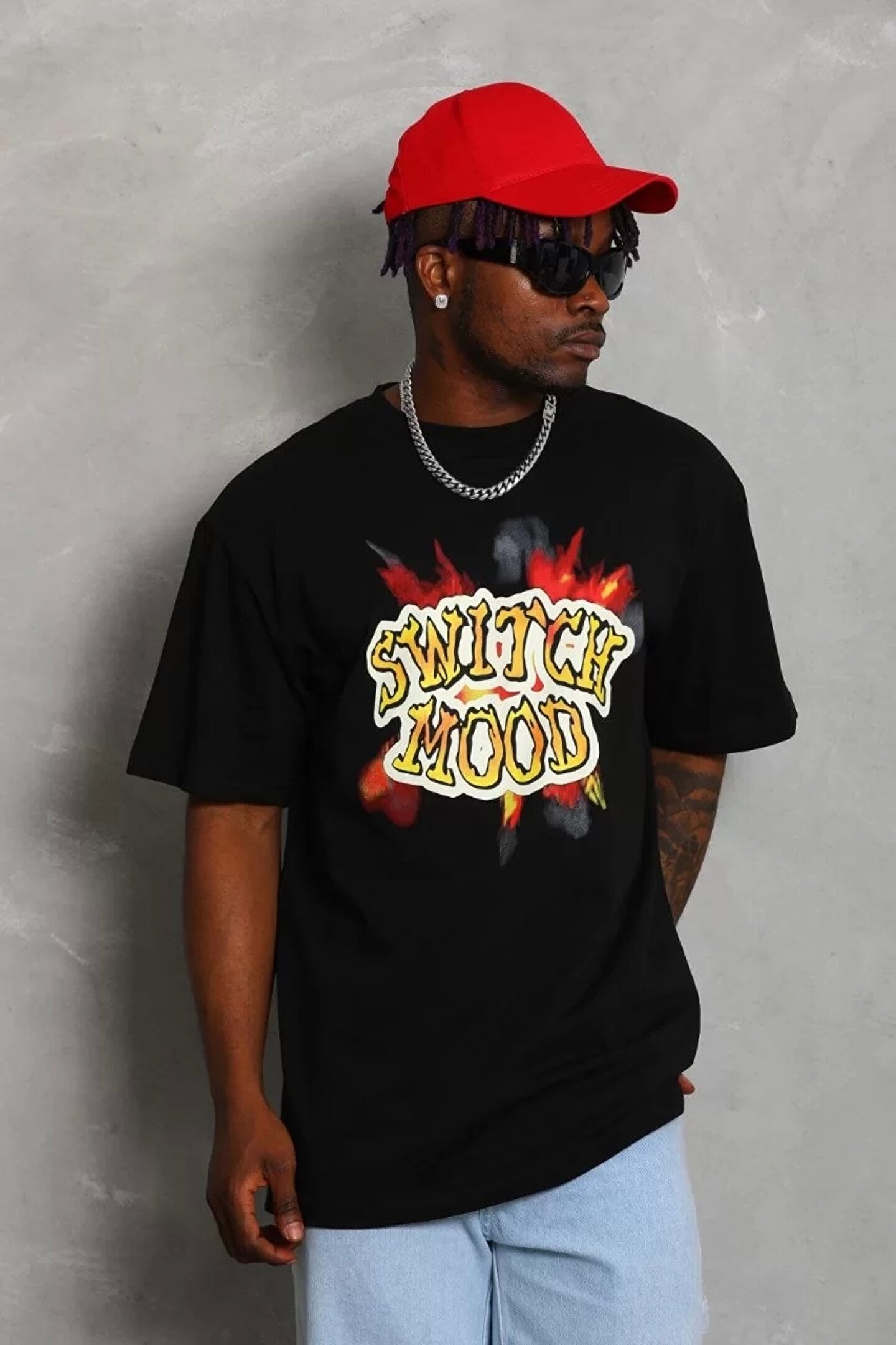 Silerra Unisex Oversize Baskılı Bisiklet Yaka T-Shirt - Siyah