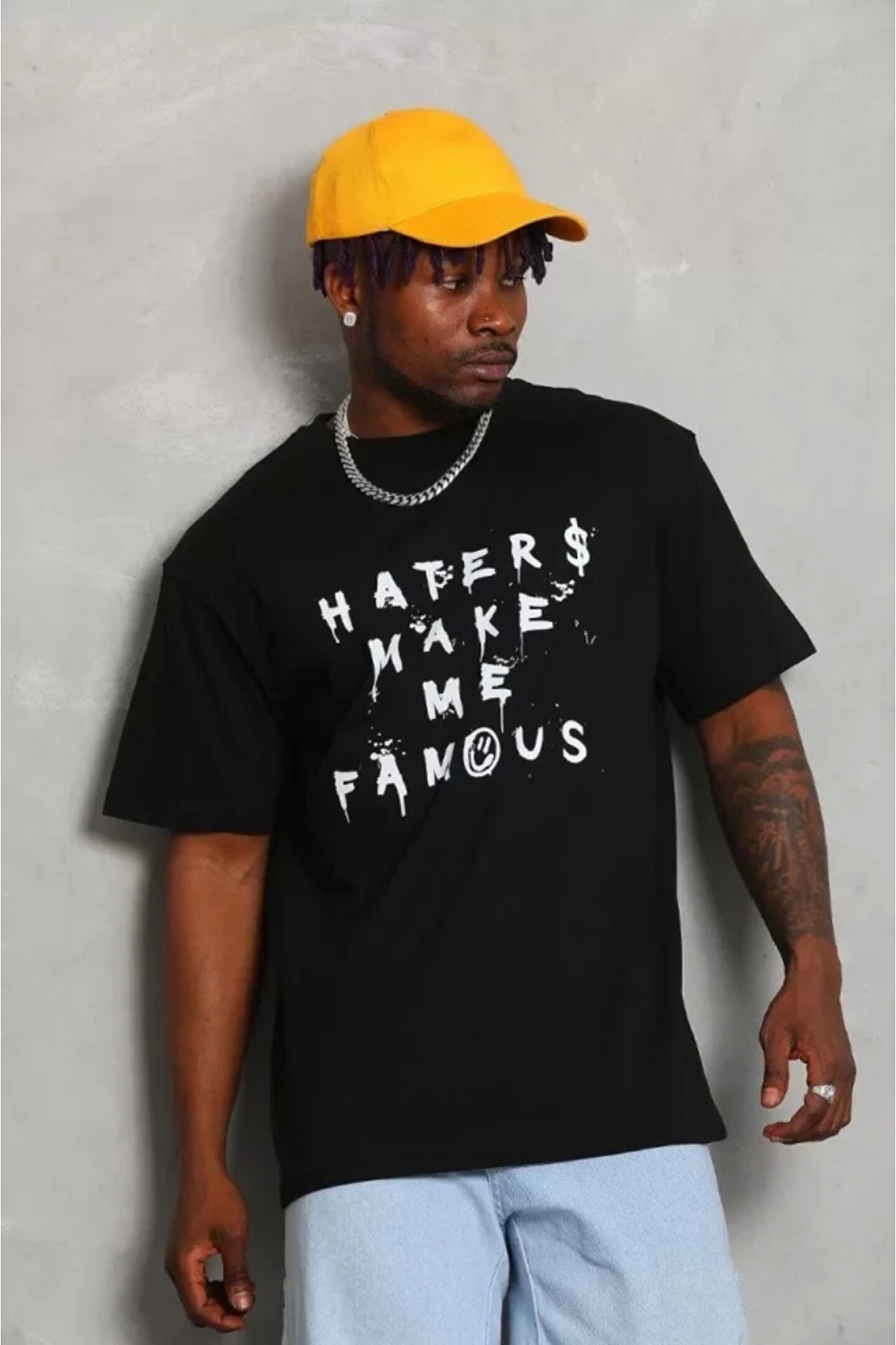 Unisex Oversize Baskılı Bisiklet Yaka T-Shirt - Siyah