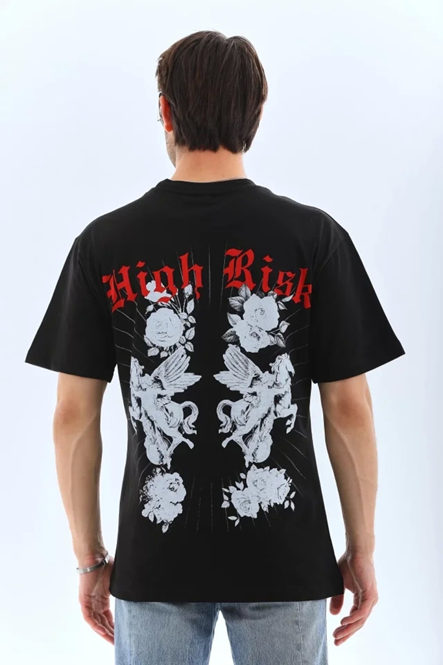 Unisex Oversize Baskılı Bisiklet Yaka T-Shirt - Siyah
