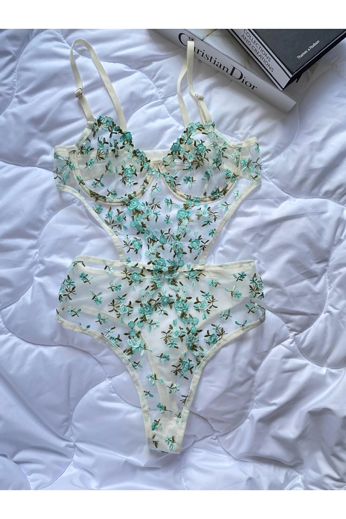 Bu büyüleyici bodysuit, doğallık ve zarafetin kusursuz bir yansımasıdır. Desteksiz ve balensiz yapısı ile vücudunuzla uyum içinde hareket ederken, hafif yapısı size özgürce nefes aldırır. İnce dantel işlemeleri ve pastel tonlardaki nazik çiçek detayları, her anınıza saf bir zarafet katarken, cildinizde adeta ikinci bir ten gibi hissettirir.