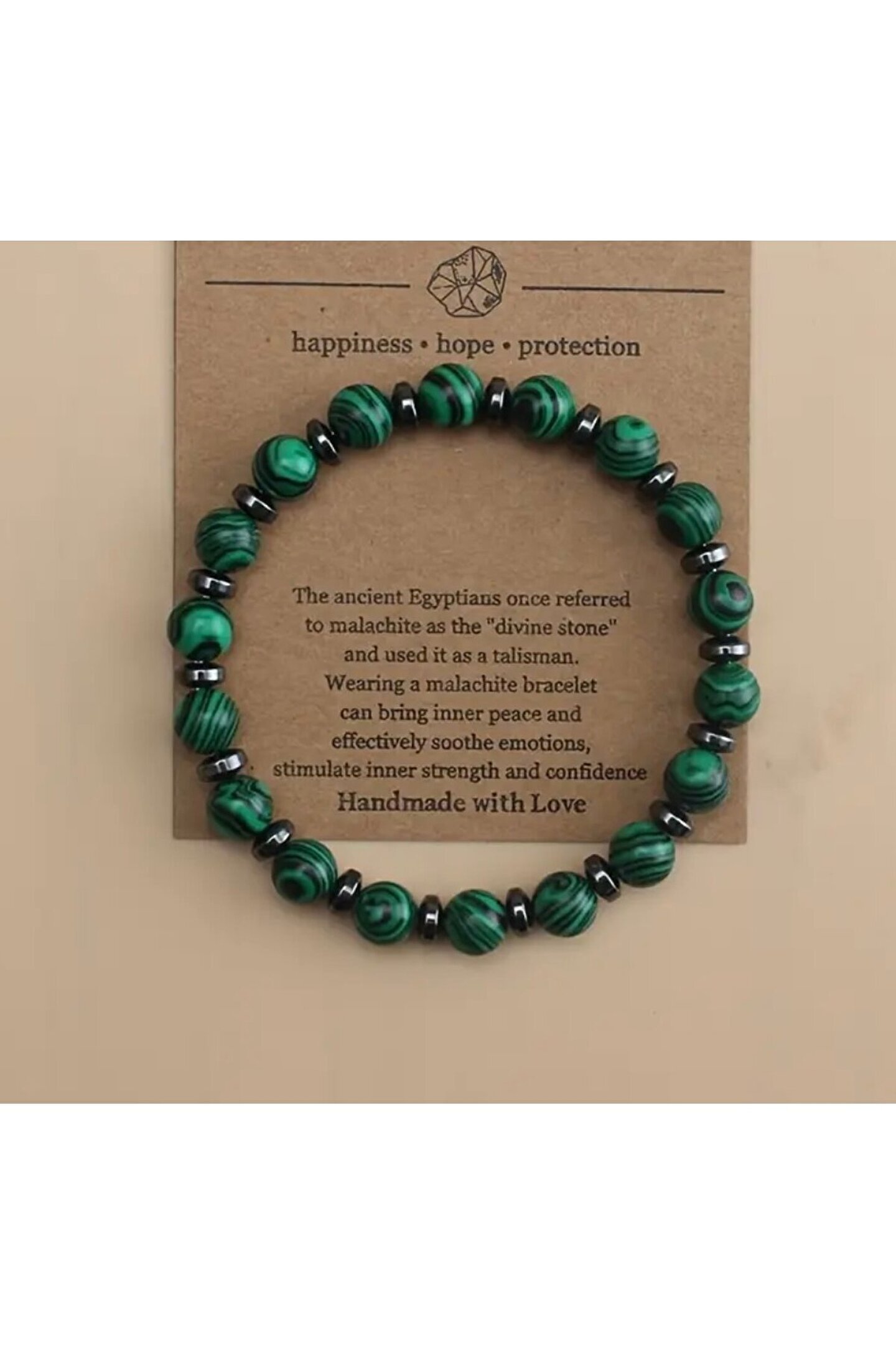 Bir Doğal Malachite Boncuk Bileklik, Hematit Boncuklarla Birleştirilmiş, Şansları Korur, Sakinliği Teşvik Eder, Emotionları Sakınır ve Güç ve Güveni Esinler.; Bu İlham Verici Bileklik, St.; Patrick'S Günü İçin Harika Bir Hediye Olarak Uygun, Her İki Erkek ve Kadın İçin Günlük Giyim İçin Uygun ve Bir Blessing Kartı İle Geliyor, Arkadaşlar İçin Mükemmel Bir Hediye Olarak Uygun.