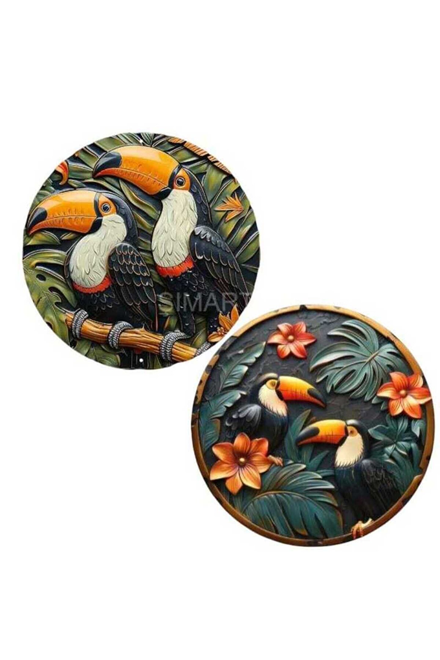 - Canlı ve çok renkli tasarımı ile göz alıcı bir dekorasyon unsuru sunar.; - Tropikal tema ve stil, mekanınıza egzotik bir hava katar.; - Yerel üretim, kaliteli malzemelerle üretilmiştir ve Türk işçiliğinin bir örneğidir.; - Ahşap materyali sayesinde dayanıklılık ve uzun ömürlü kullanım sağlar.; - Tek parça halinde gelen bu ürün, kolay montaj imkanı sunar.; - 28 x 28 cm boyutlarındaki kompakt yapısıyla her türlü alana uyum sağlar.