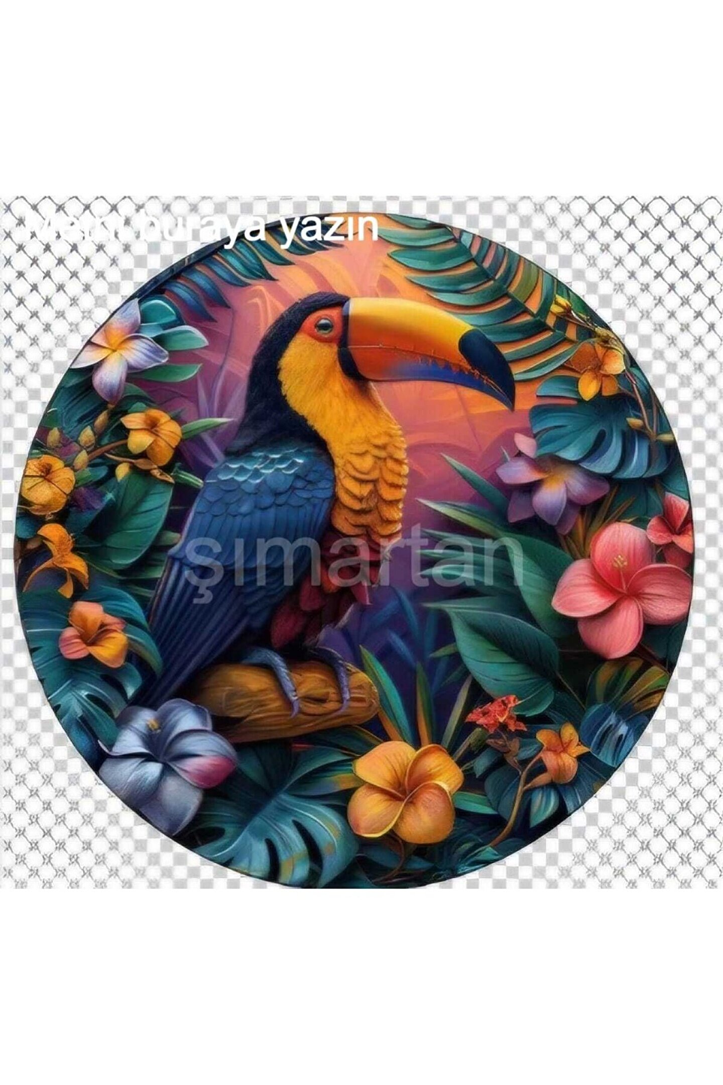 ŞANS GETİRDİĞİNE İNANILAN , UĞURLU TUKAN KUŞU KALITELI MDF ÜZERİNE BASKI YAPILMIŞTIR.; RENKLER KALİTELİ BASKI 28 CM ÇAPINDA - Tamamen MDF , ahşap malzemeden yapılmış Şans Getiren Uğurlu Tukan Kuşu, evinizin dekorasyonuna sıcak ve otantik bir dokunuş katıyor.; - Tek parça halinde gelen bu ürün, kolay montaj avantajı sunarak mekanınızda hızlıca yer buluyor.; - Tropikal temalı tasarımıyla dikkat çeken Şans Getiren Uğurlu Tukan Kuşu, evinizin atmosferini canlandırarak pozitif enerjiyi davet ediyor.;