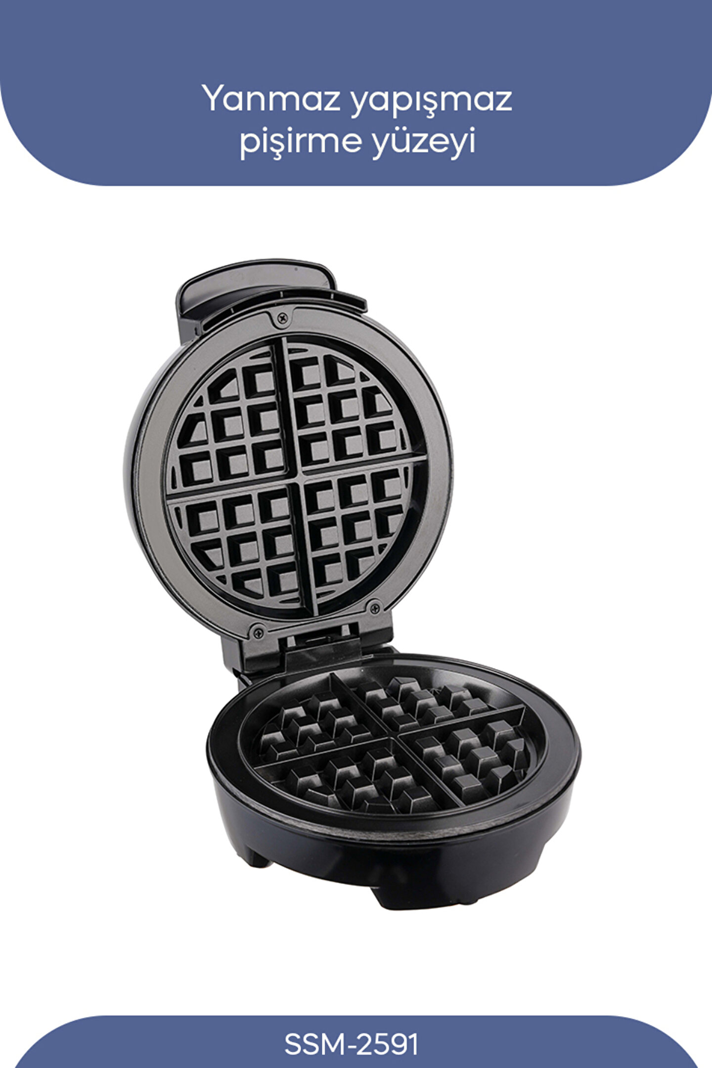 SSM-2591 Belçika Waffle Makinesi, Yapışmaz Kaplama 1000 Watt;