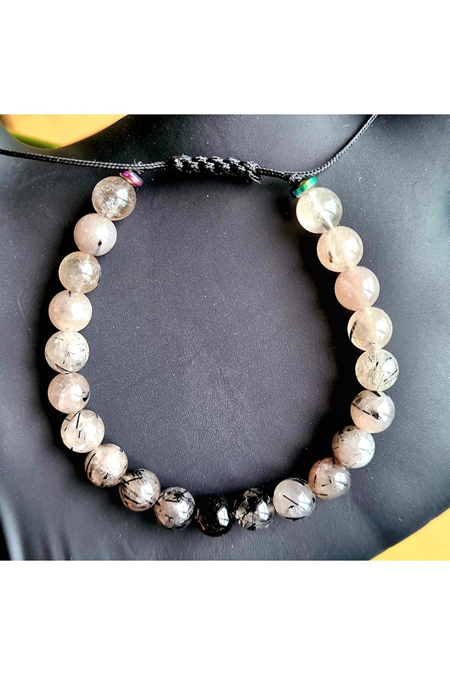 El yapımı tasarımıyla öne çıkan bu bileklik, her bir parçanın benzersiz ve özgün bir dokunuşla hazırlandığı bir üründür; Doğal taş kullanımı sayesinde, her bileklik farklı bir renk ve desen sunarak kişisel tarzınıza eşsiz bir dokunuş katar; Rutil kuvars taşı, hem şıklığı hem de enerjiyi temsil eder; bu bileklik ile kendinizi pozitif enerjiyle çevreleyin; El işçiliğiyle üretilen bu bileklik, hem günlük kullanım hem de özel günler için ideal bir aksesuardır;
