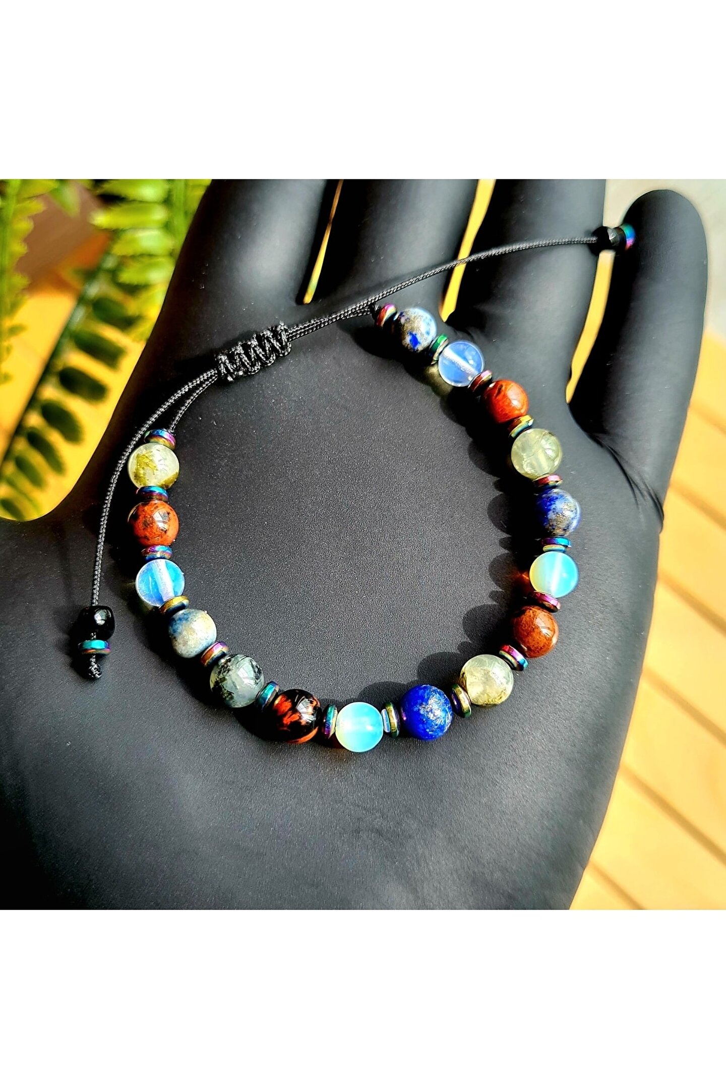 Singincraft Terazi Burcu Doğal Taş Bileklik > Lapis Lazuli - Beyaz Opal - Maun Obsidyen - Prehnit
