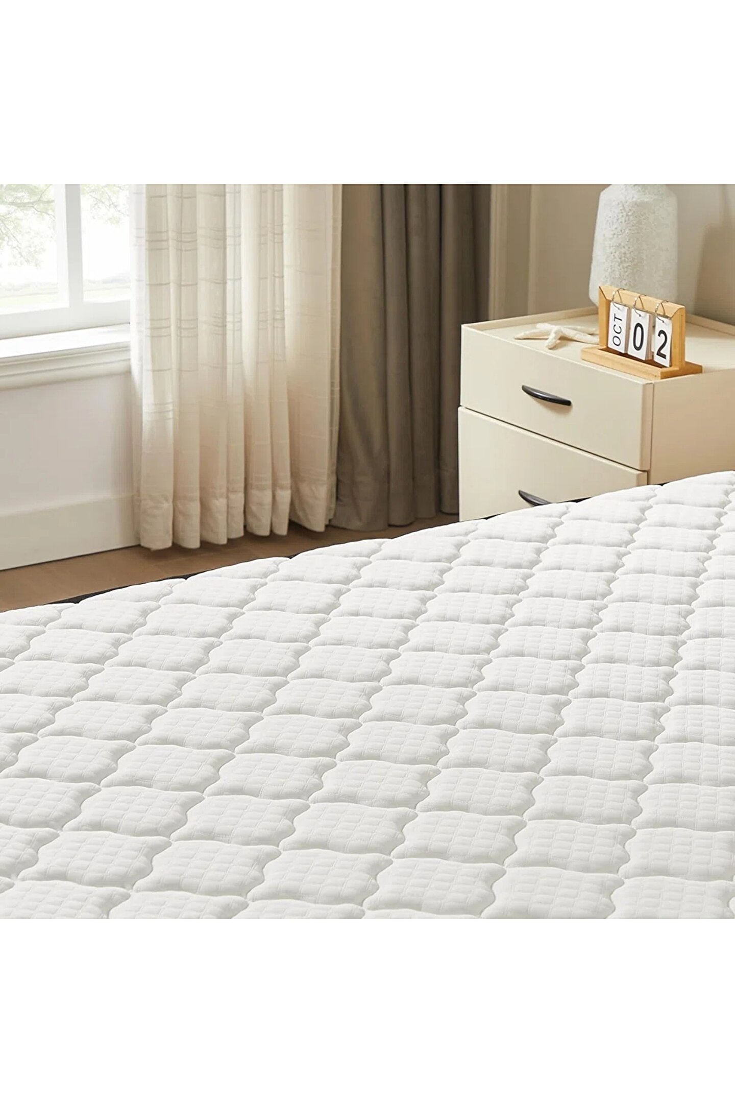 Yatak yüzeyi ise nefes alabilen, doğal pamuklu kumaşla kaplanmıştır. Bu sayede terletmeyen ve cilde dost bir kullanım sağlar. Hem yaz hem de kış aylarında ideal bir uyku deneyimi sunar.
