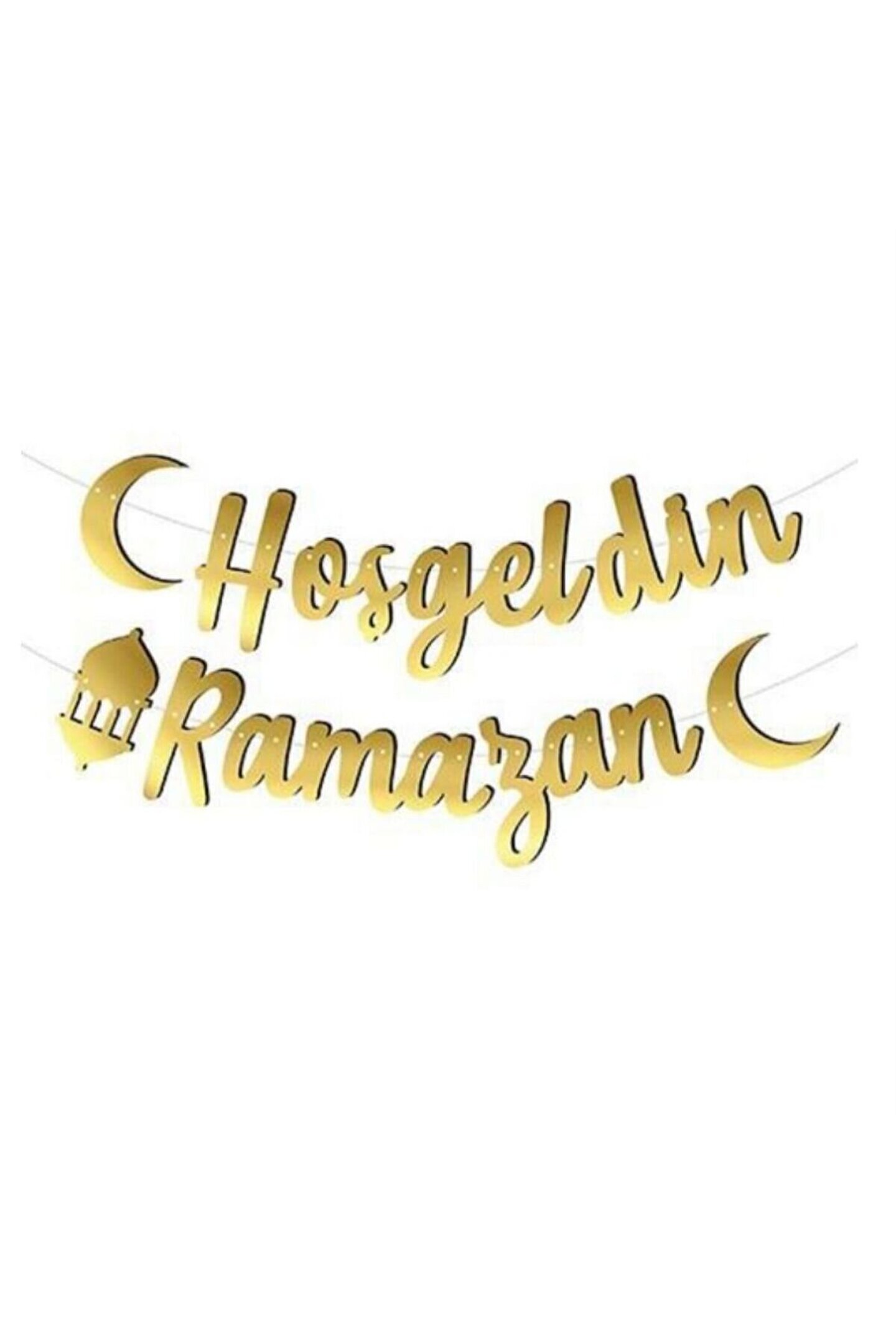 Hoşgeldin ramazan yazlı kaligrafi altın renk banner Ayı süsleme seti 210 cm