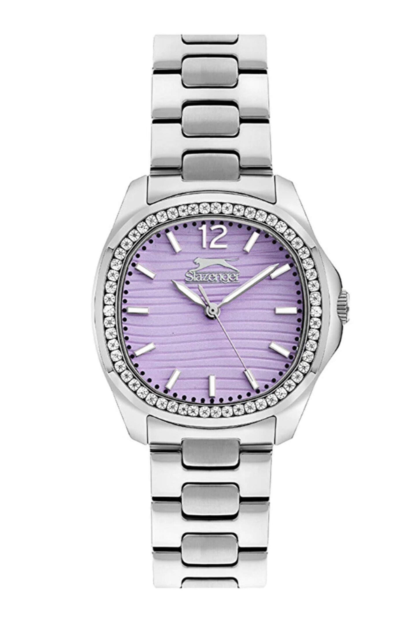 Kasa Çapı : 34 mm Kasa Rengi : Çelik Kasa Şekli : Yuvarlak Kayış Rengi : Çelik Kayış Tipi : Çelik Kordon Kadran Rengi : Lila Makine Tipi : Quartz-Pilli Cam Tipi : Mineral Su Geçirmezlik : 3 atm Çalışma Tipi : Analog
