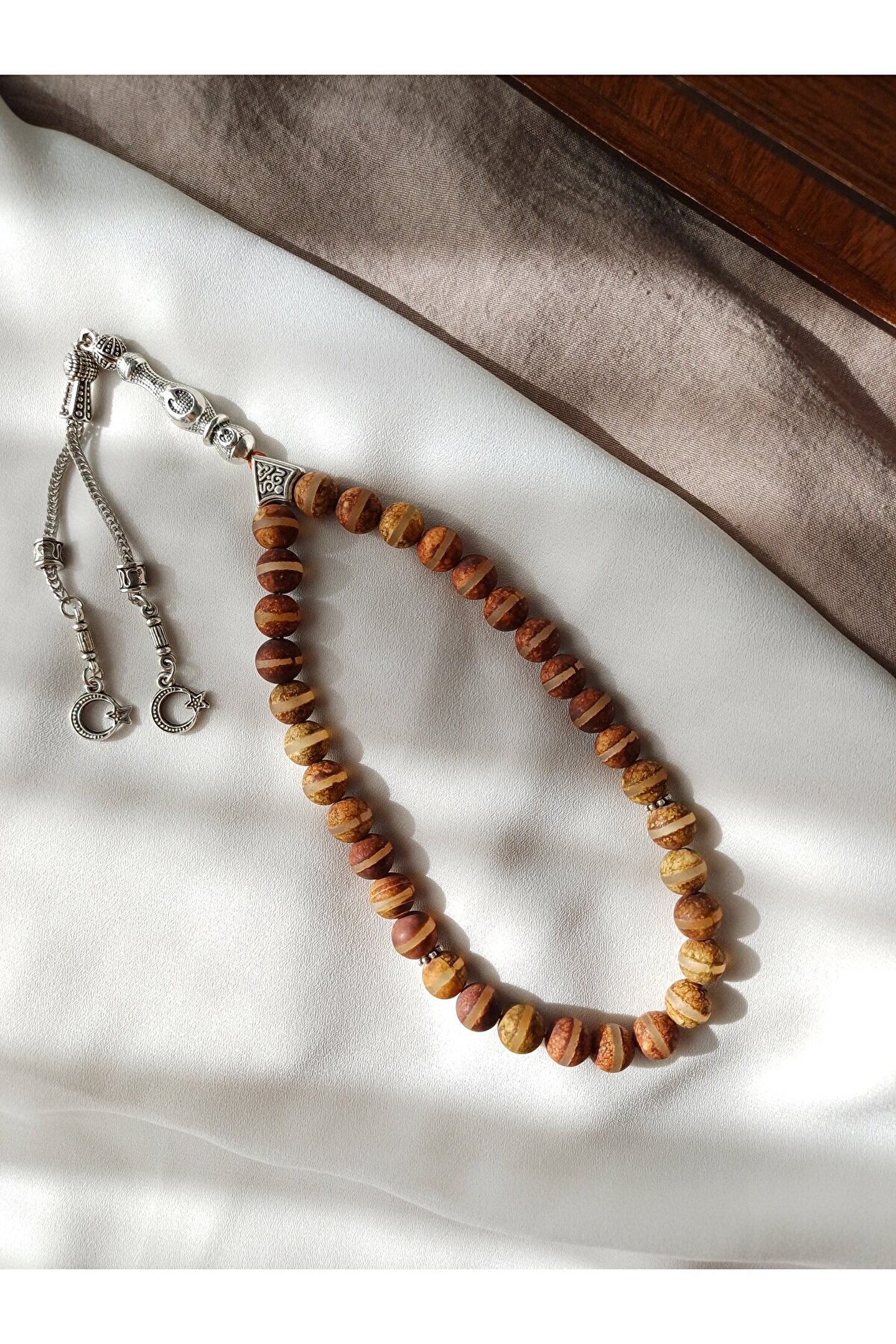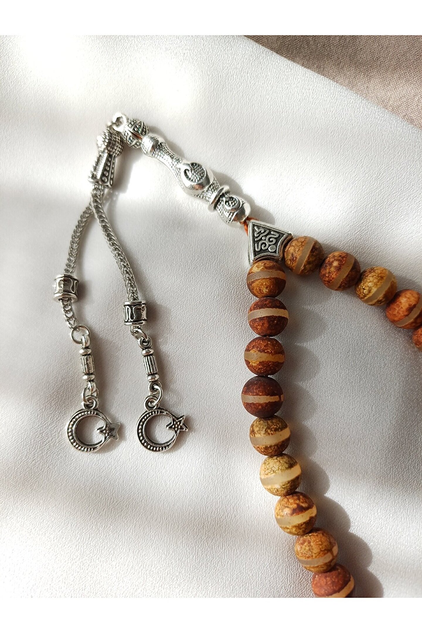 8MM Tibet Akik taşı kullanılarak tasarlanmıştır.; ; Püskül, imame ve diğer materyaller pirinç üstü gümüş rengi kaplamadır.; ; Tespih kutusu ile birlikte gönderilmektedir.; Tibet Akiği sünnet olan ana taştır.; ; Nazara karşı en etkili taşlardan birisidir.; Vücutta bulunan olumsuz enerjiyi atar.; Cesaret verir.; Kırmızı renkteki akik taşları bedeni fiziken güçlendirir.; Akıl ve mantık gücünü geliştirir.; Kalp ve kan dolaşım sistemini güçlendirir, kalbi korur ritim bozukluğuna iyi geldiği bilinmektedir.