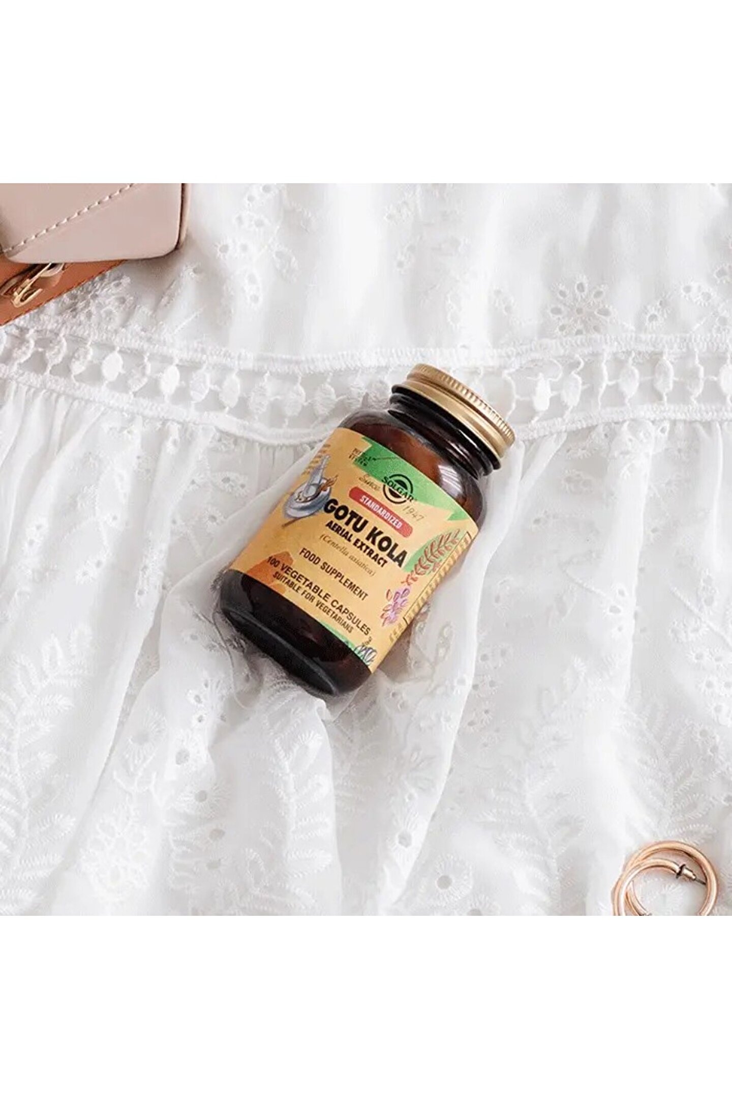 Gotu Kola Aerial Extract Standardize Gotu Kola Toprak Üstü Ekstresi Gotu Kola bitki ekstresi içeren takviyedir.; Bütün bitki ile birlikte standartlaştırılmış özü içerir.; Standardizasyon, sabit miktarda aktif içeriği garanti eder.; Solgar® Standardized • Full Potency™ (SFP) Bitkiler, hem geleneksel bitkicilik hem de standart bitkisel teknoloji ideolojilerini birleştiren benzersiz bir süreçle geliştirilmiştir.; Tutarlı ve güvenilir bitkisel besin seviyeleri sağlamak için, bu önemli aktif bitki bileşiklerinin kontrollü bir miktarını izole ediyoruz.; Ardından, bu gelişmiş, "standartlaştırılmış" bileşikleri, bitkinin tamamında doğal olarak bulunan tüm bileşenlerle harmanlıyoruz.; Sonuç, doğada bulunan tüm sinerjik ve faydalı niteliklere sahip, güçlü, üstün kaliteli standartlaştırılmış bitki özüdür.; Yetişkinler için, tercihen yemek zamanı, günde bir-üç (1-3) kapsül.; Bol su ile alınız.; Her bitkisel kapsülde Standardize Gotu Kola Toprak Üstü Ekstresi (Centella asiatica) 100 mg Sağlanan: Triterpen Glikozitleri [6%] 6 mg