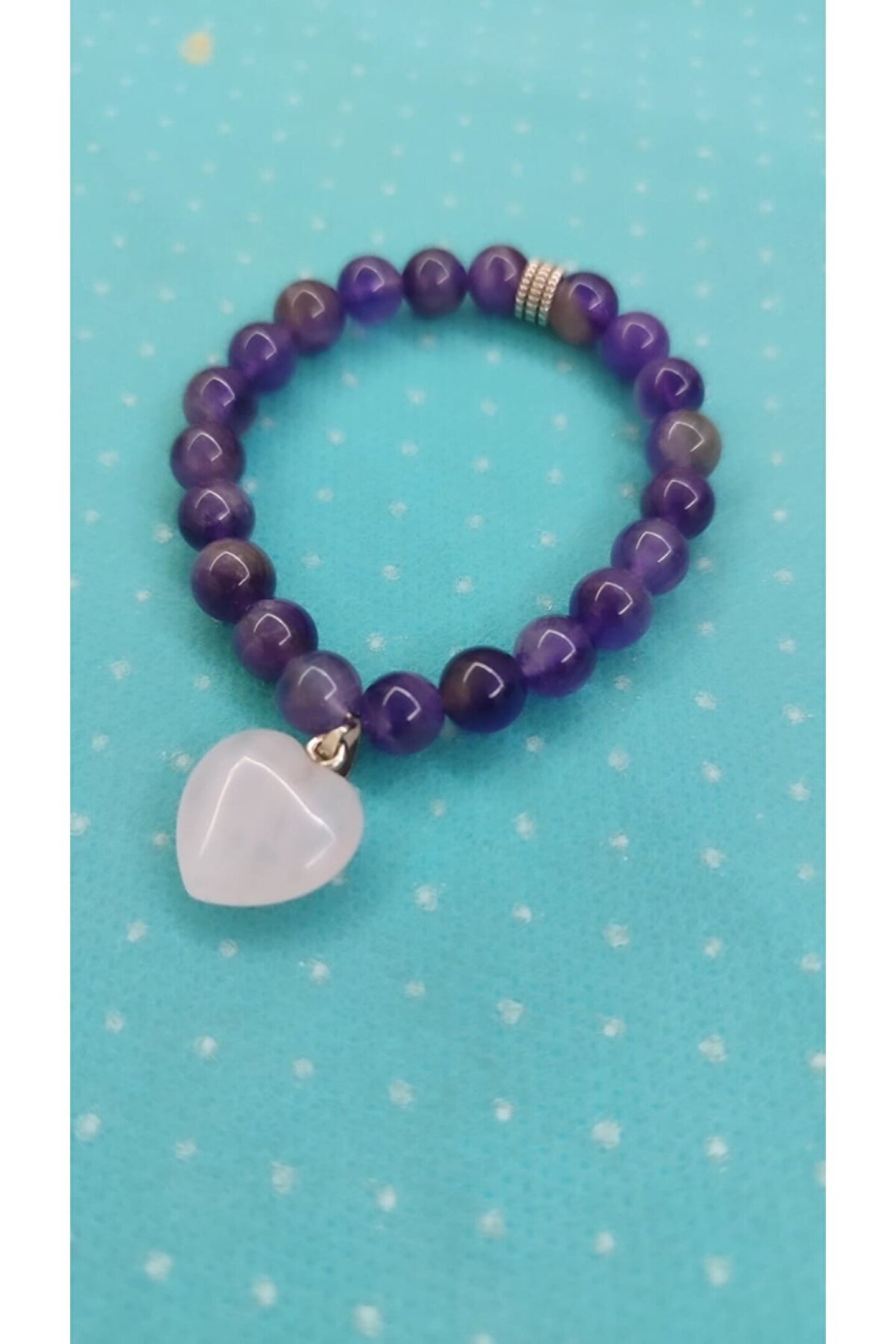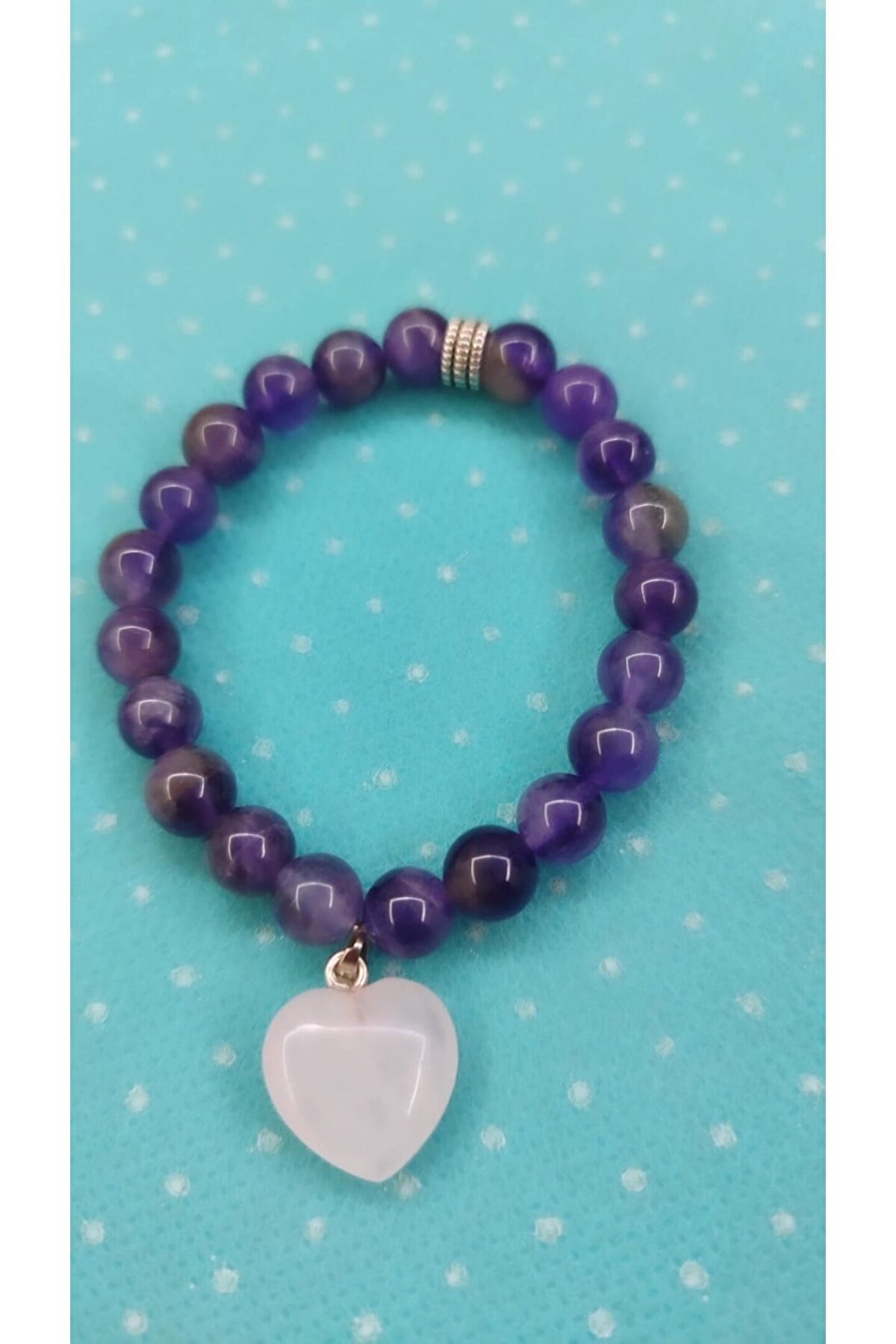 Doğal taş kullanımı sayesinde her bileklik benzersiz ve otantik bir görünüm sunar; Ametist ve kuvars taşlarının uyumlu kombinasyonu, zarif ve modern bir stil oluşturur; Taşların doğal dokusu, bilekliğe sofistike bir hava katar ve günlük kullanım için idealdir; Kaliteli malzemeler kullanılarak üretilmiş olup, uzun süreli kullanım için dayanıklılık sağlar;