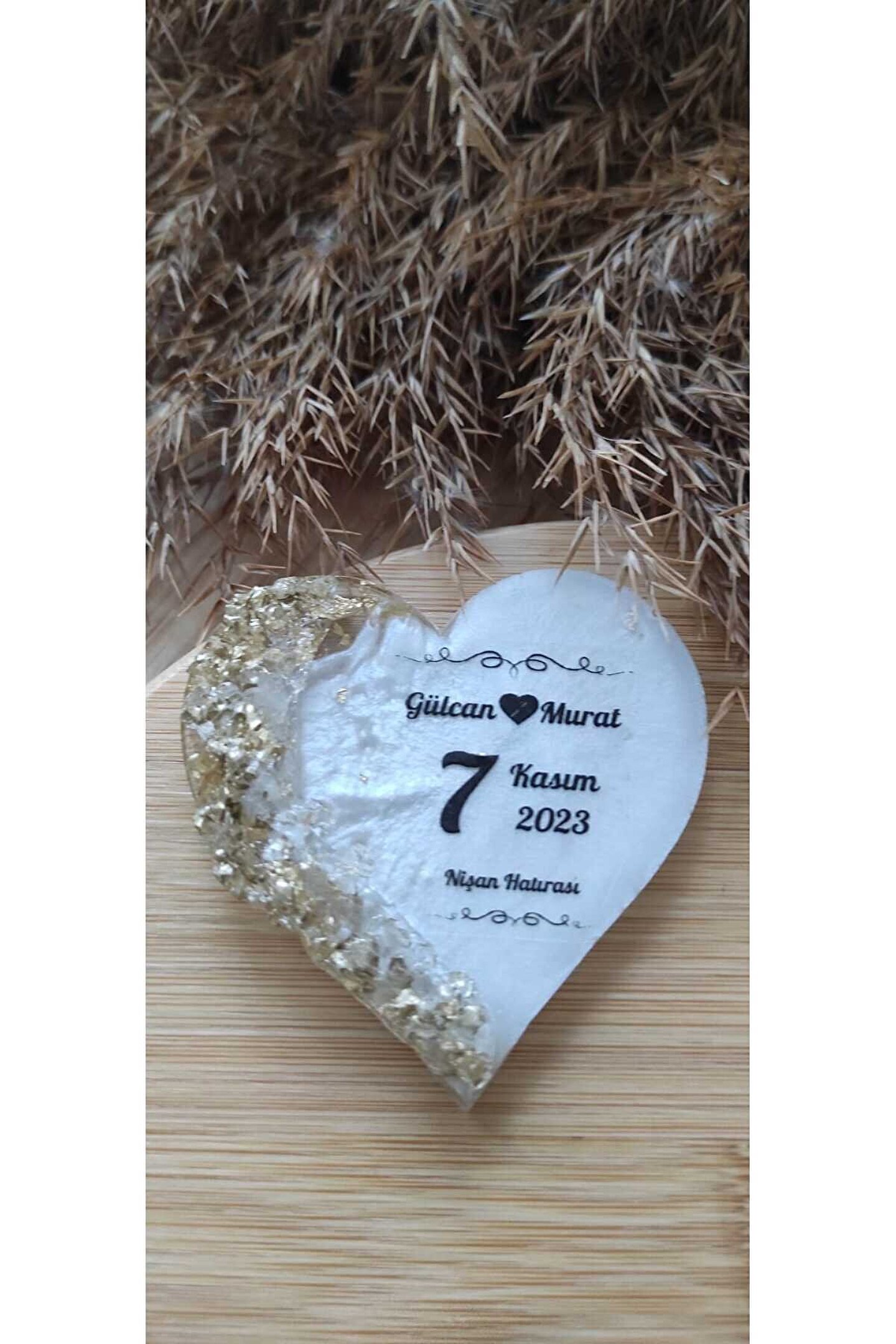 10 Adet ; Epoksi gold rengi kalp detaylı magnet ; Kişiye özel tasarım kaliteli baskı hatıra magneti ; Her ürün tek tek jelatinlenerek gönderilecektir ; Alıcının siparişi oluşturduktan sonra 24 saat içinde sipariş numarası özel no-isim-tarih gibi taleplerini satıcıya iletmelidir, aksi durumda magnetler standart baskı ile basılarak gönderim yapılacaktır ;