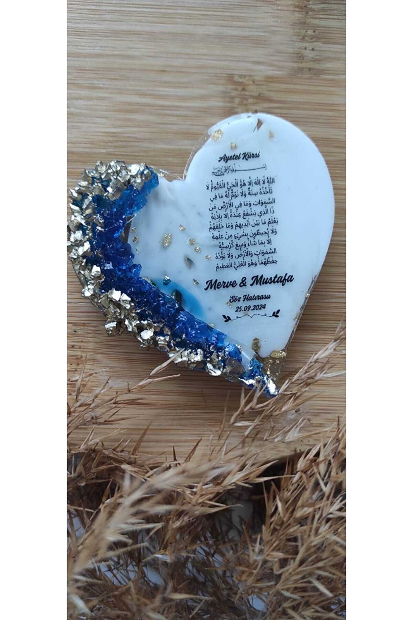 20 Adet ; Epoksi mavi/gold rengi kabartmalı taşlı kalp detaylı magnet ; Kişiye özel tasarım kaliteli baskı hatıra magneti ; Her ürün tek tek jelatinlenerek gönderilecektir ; Alıcının siparişi oluşturduktan sonra 24 saat içinde sipariş numarası ile özel not-isim-tarih gibi taleplerini satıcıya sor kısmından iletmelidir, aksi durumda magnetler standart baskı ile basılarak gönderim yapılacaktır ;