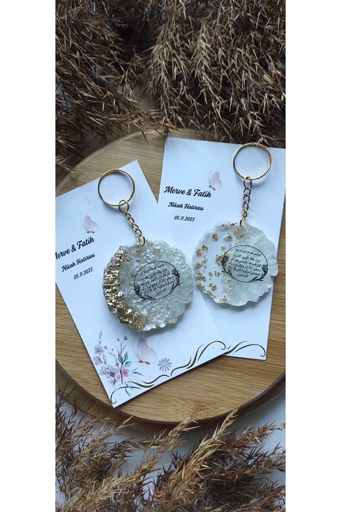 8 Adet ; Özel tasarım baskılı kartlı ; Özel Nazar Ayeti baskılı epoksi anahtarlık ; Ürünler tek tek jelatinlenerek gönderilmektedir ; Alıcının siparişini oluşturduktan sonra 24 saat içinde sipariş numarası ile birlikte isim-tarih-özel not gibi taleplerini satıcıya sor kısmından iletmesi gerekmtektedir.; Aksi durumda standart baskı ile gönderim yapılacaktır;
