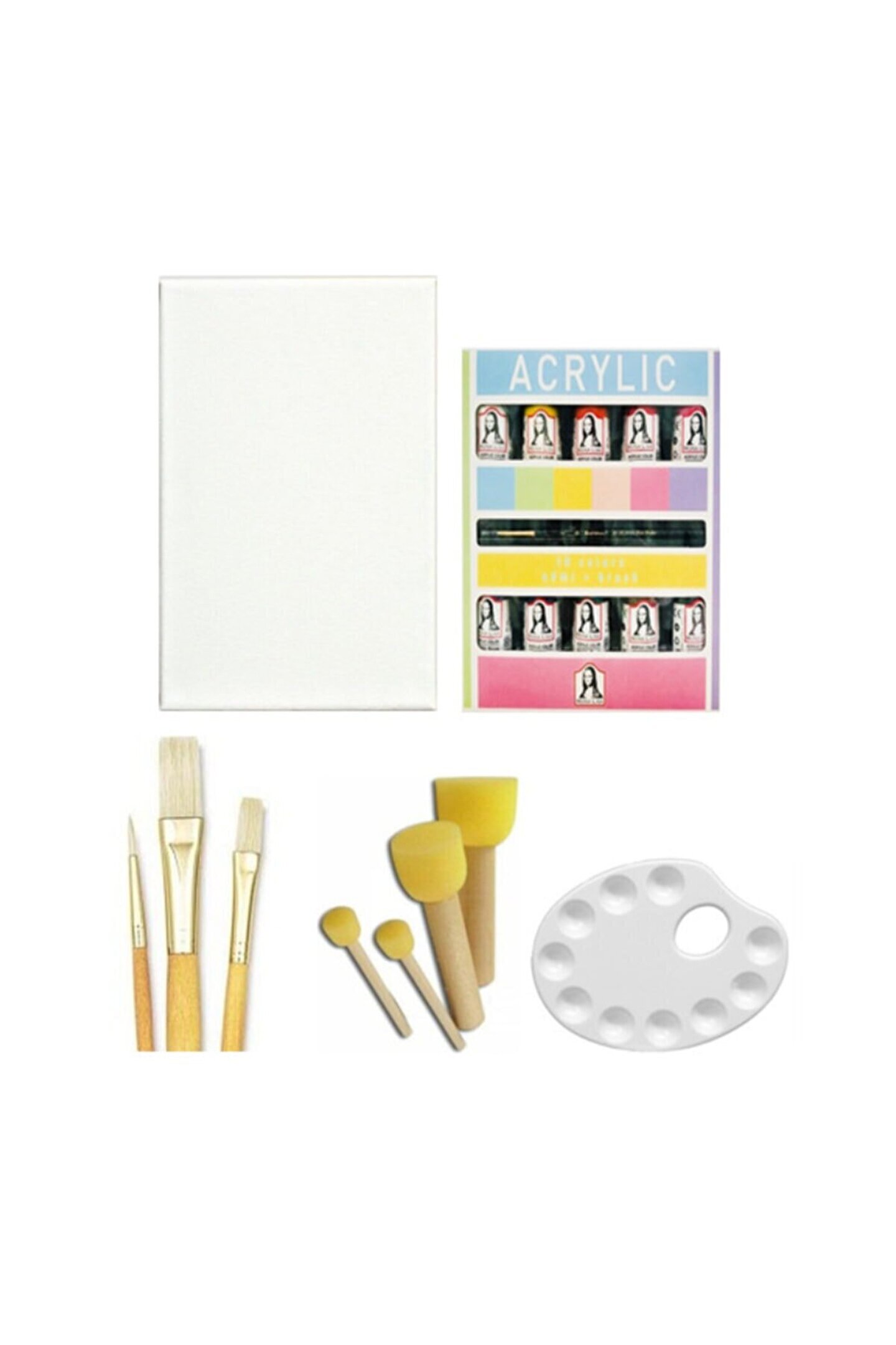 1 adet 35*50 tuval 10 lu 40 ml akrilik boya 1 adet palet 4 lü ponpon fırça 3 lü fırça seti