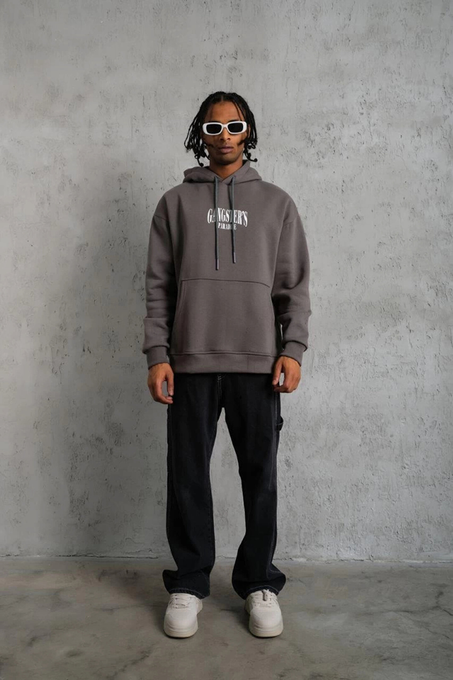 Erkek Paradise Baskılı Kapüşonlu Sweat - Gri