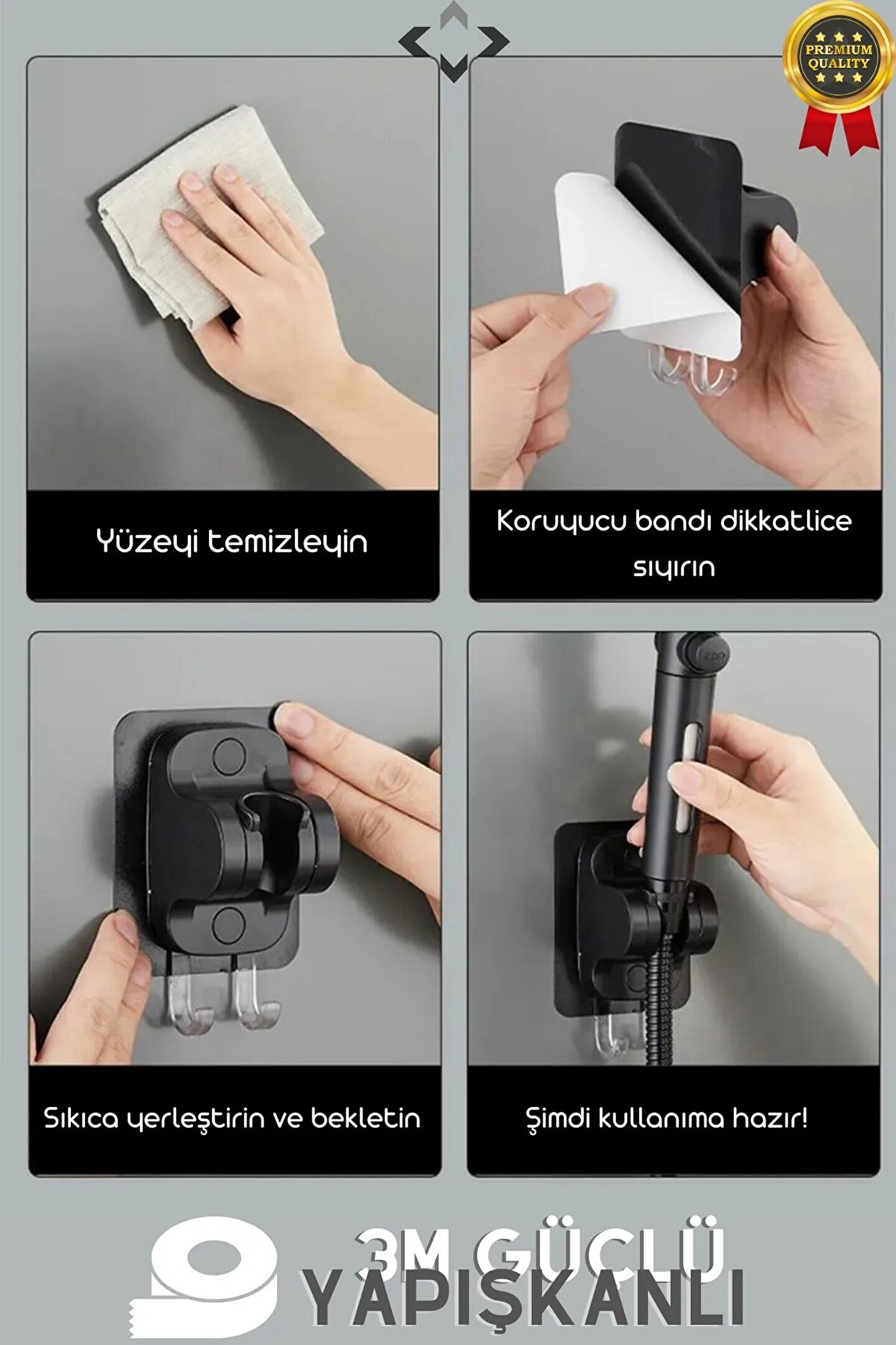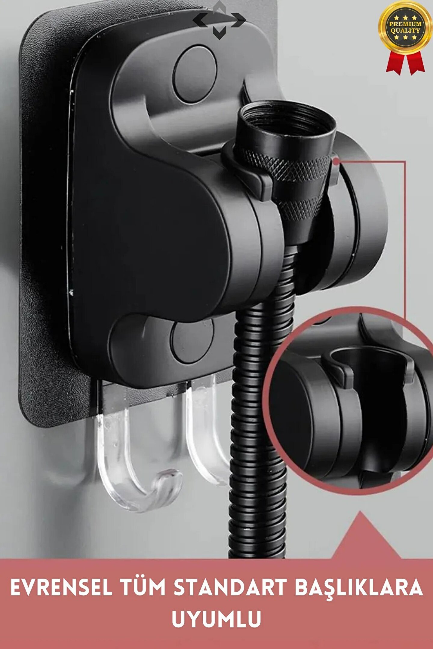 - Siyah renk seçeneğiyle banyonuzun dekorasyonuna kolayca uyum sağlar ve şık bir görünüm sunar.; - Dayanıklı plastik materyali sayesinde uzun ömürlü kullanım vaat eder ve sık yıkama koşullarına karşı direnç gösterir.; - Güçlü tutuculu mafsal duş başlık askısı ile duş deneyiminizi daha konforlu hale getirir; su akışını kolayca kontrol edebilirsiniz.; - Sabit tip tasarımı sayesinde ekstra stabilite sağlayarak düşme riskini azaltır ve güvenli kullanım sunar.; - Yapışkanlı özelliği ile montajı pratik ve hızlıdır; vidalar veya çiviler gerektirmeden duvara kolayca takılabilir.