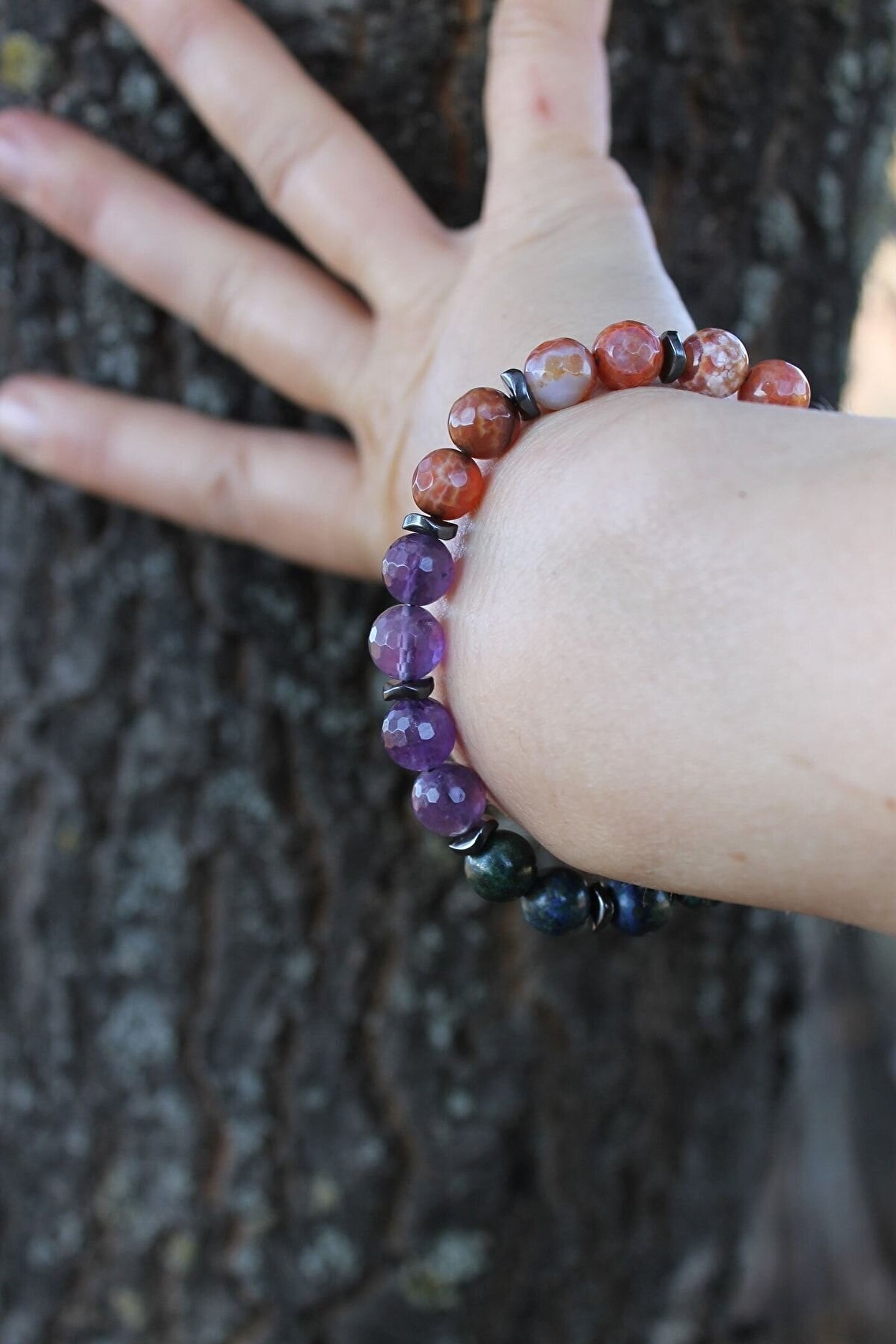 - Kova burcu bileklik, doğal taşların eşsiz güzelliğini ve enerjilerini yansıtan bir aksesuardır; - Lapis lazuli, aventurin, apatit, opal, akik, hematit ve azurit gibi farklı doğaltaş türlerini bir araya getirerek, her bir bileşenin benzersiz özelliklerini bir araya getirir; - 8 mm çapındaki küre formu, hem şık bir görünüm sunar hem de bileklerinize rahat bir kullanım sağlar; - Doğal taş materyali sayesinde her parça benzersizdir ve her kullanımda farklı bir deneyim sunar;