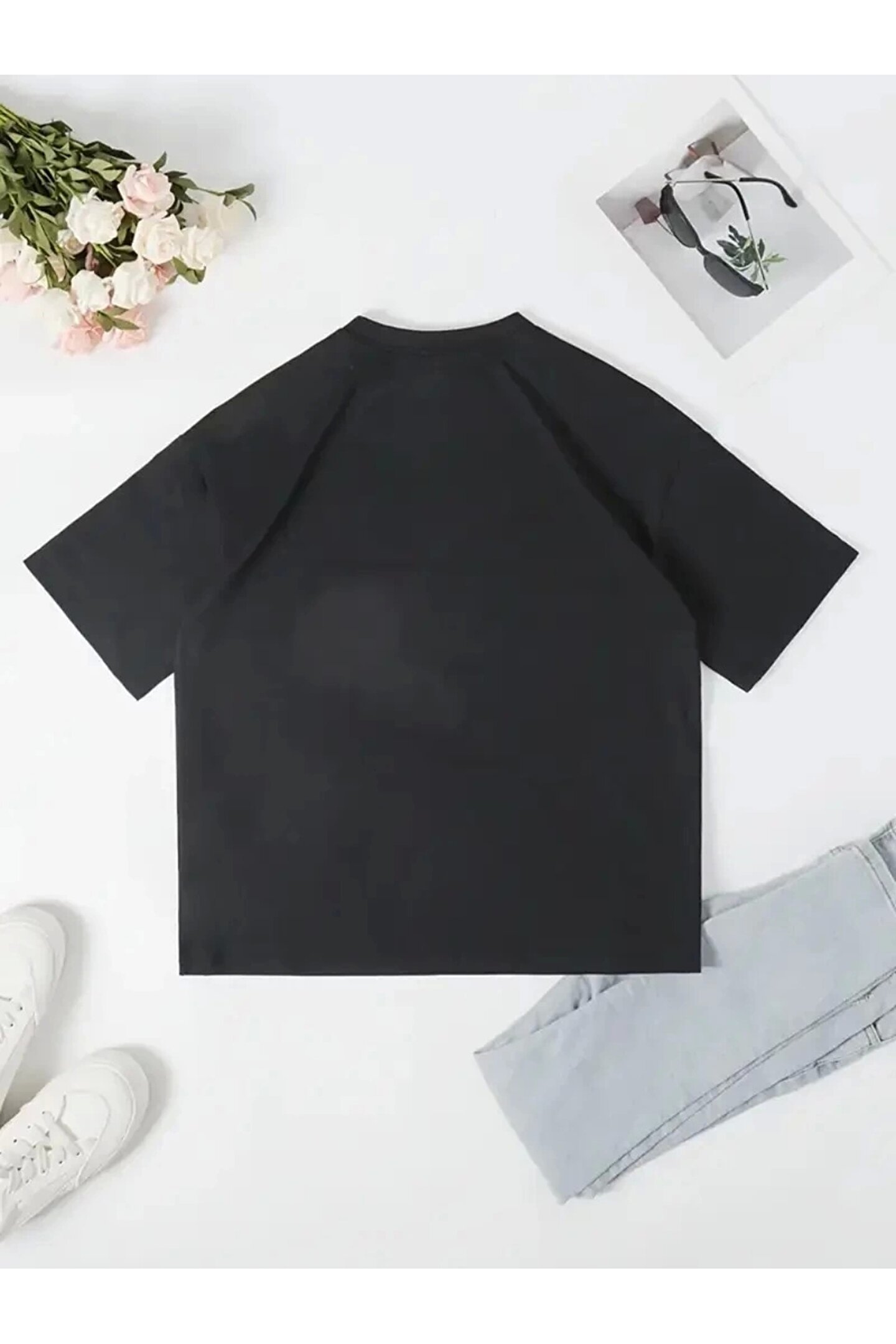 Tam12den Home Ördek Baskılı ve Yuvarlak Yakalı Kadın Günlük Büyük Boy Siyah Tişört. - Siyah