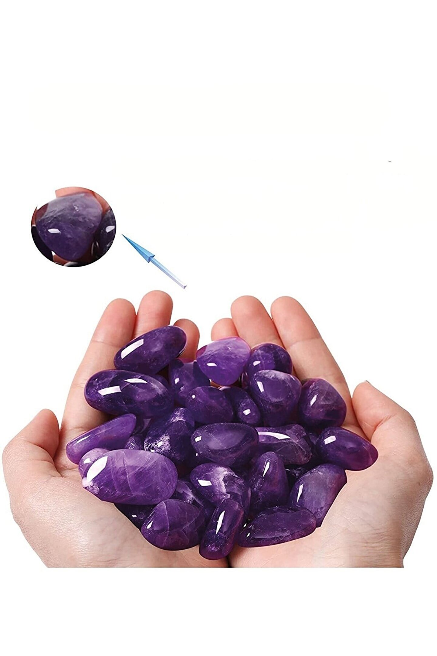 Ametist doğal taş, benzersiz ve doğal güzelliğiyle dikkat çeker; Sertifikalı olması, ürünün orijinalliğini ve kalitesini garanti eder; Tek parça halinde sunulan bu taş, dekoratif objelerinizde veya kişisel kullanımınızda şıklığı yakalamanızı sağlar; Tamburlanmış yapısı sayesinde, her bir parça eşsiz bir dokunuşla öne çıkar;