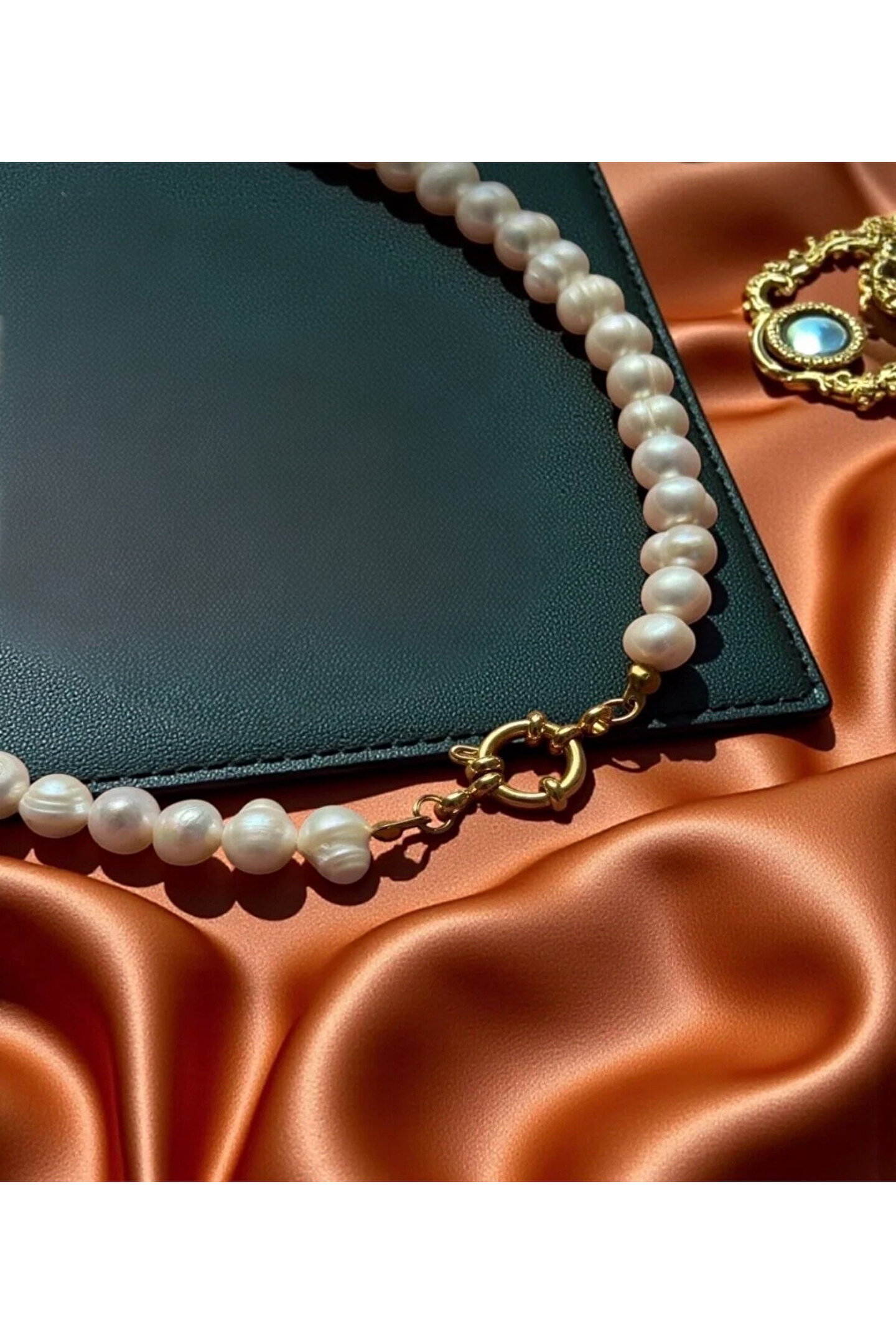 Taş-Mir 45 Cm Sertifikalı Gerçek Doğal 8 mm İnci Kolye - Gemici Kilit