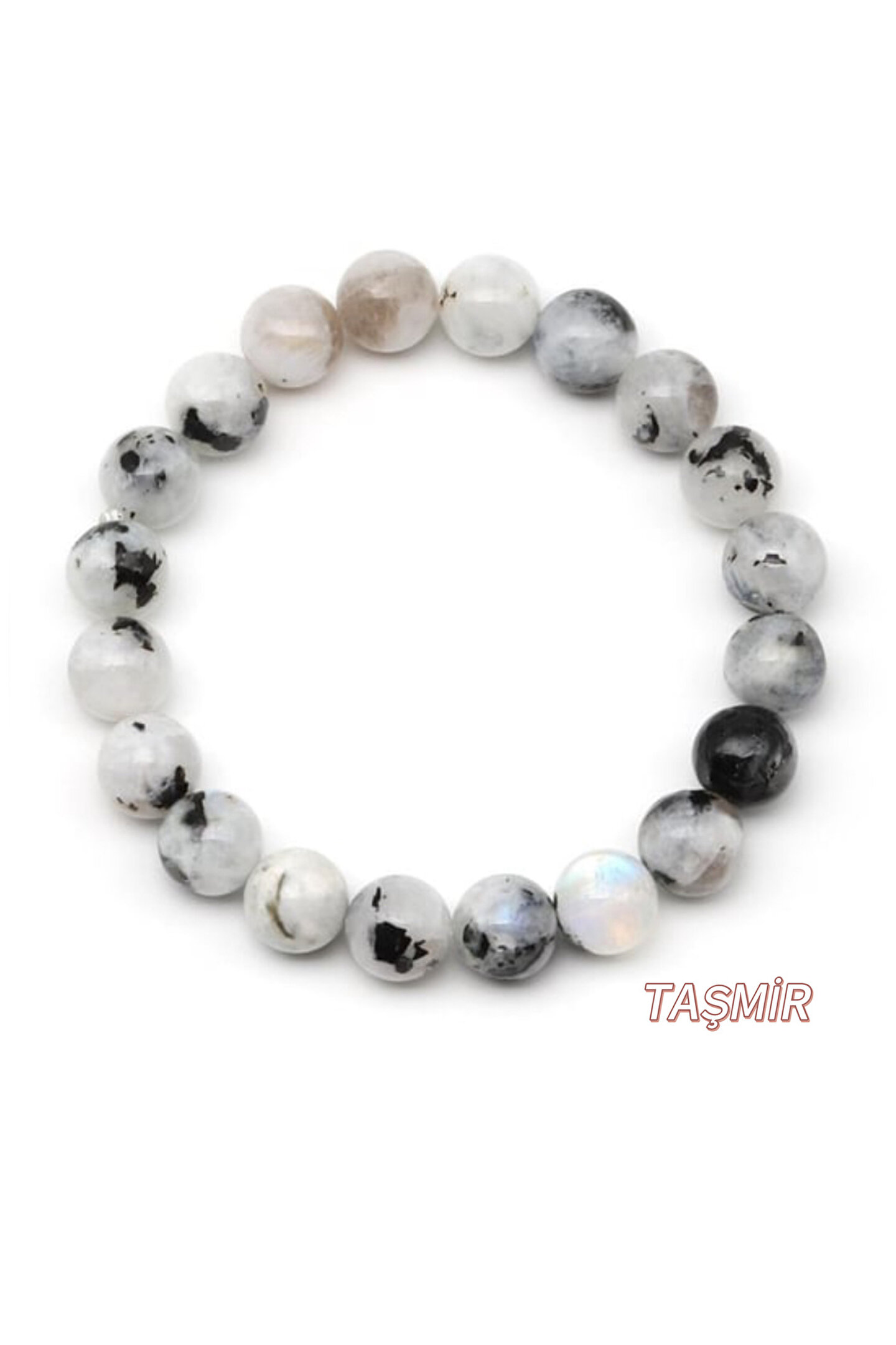 Bu Üründe Kullanılan Doğal Taş:Ay Taşı;Bu Üründe Kullanılan Doğal Taş Boyutu:Ortalama Çap : 10 mmOrtalama Uzunluk : 19 cm ( Tek Sıra ); Elastik yapıda olduğu için yetişkin kadın ve erkekler için uygundur.;