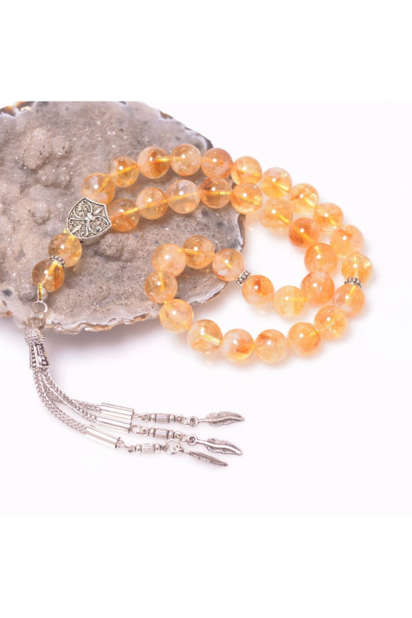 Değerli müşterilerimiz, Son zamanlarda bazı satıcıların düşük kaliteli ürünleri aynı ürün adıyla gönderdiğini fark ettik.; Sizlere her zaman en yüksek kaliteyi sunabilmek için, yalnızca kendi resmi mağazamızdan alışveriş yapmanızı tavsiye ederiz.; Orijinal ürünlerimizi güvenle satın almak için lütfen mağaza adımızı kontrol etmeyi unutmayın.; Saygılarımızla, Taşmir Bu Üründe Kullanılan Doğal Taş: Sitrin Taşı ; Bu Üründe Kullanılan Doğal Taş Boyutu: 8 mm ; Ürünün Ortalama Uzunluğu:İmameden Uzunluk: 21 cmToplam Uzunluk: 30 cm;Not: Ürünler doğal taş olduğu için renk tonları küçük farklılıklar gösterebilir.; Kullanılan metal aksam modelleri ve püskül ucundaki şekiller stok durumuna göre farklılık gösterebilir.