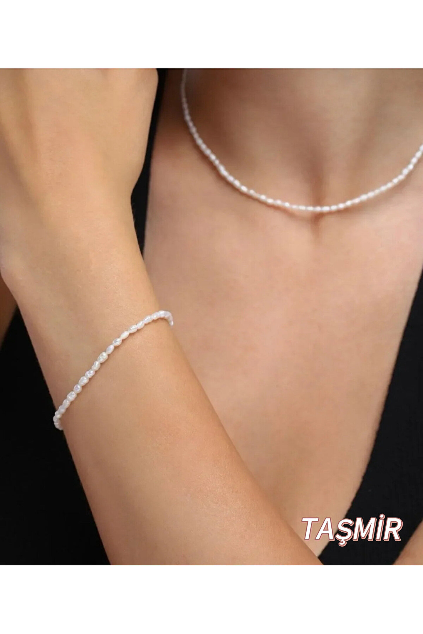 Taş-Mir Gerçek Arpa İnci Kolye Bileklik Set 55 Cm