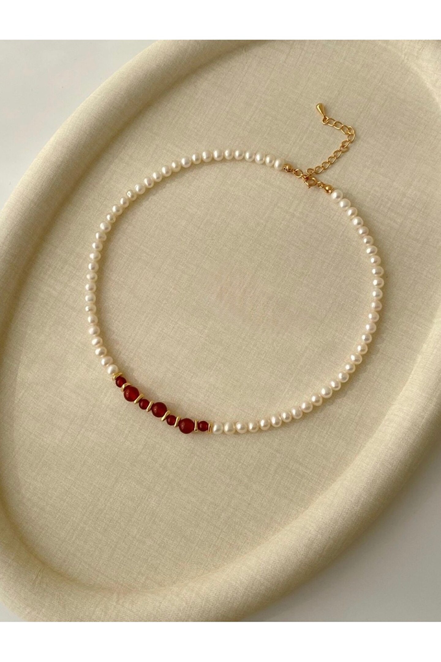 Sertifikalı gerçek 4 mm inci ve 6 mm ve 4 mm akik taşından kolye;Kolye uzunluğu zincir dahil : 45 Cm;Kullanılan Materyal: Paslanmaz Çelik;