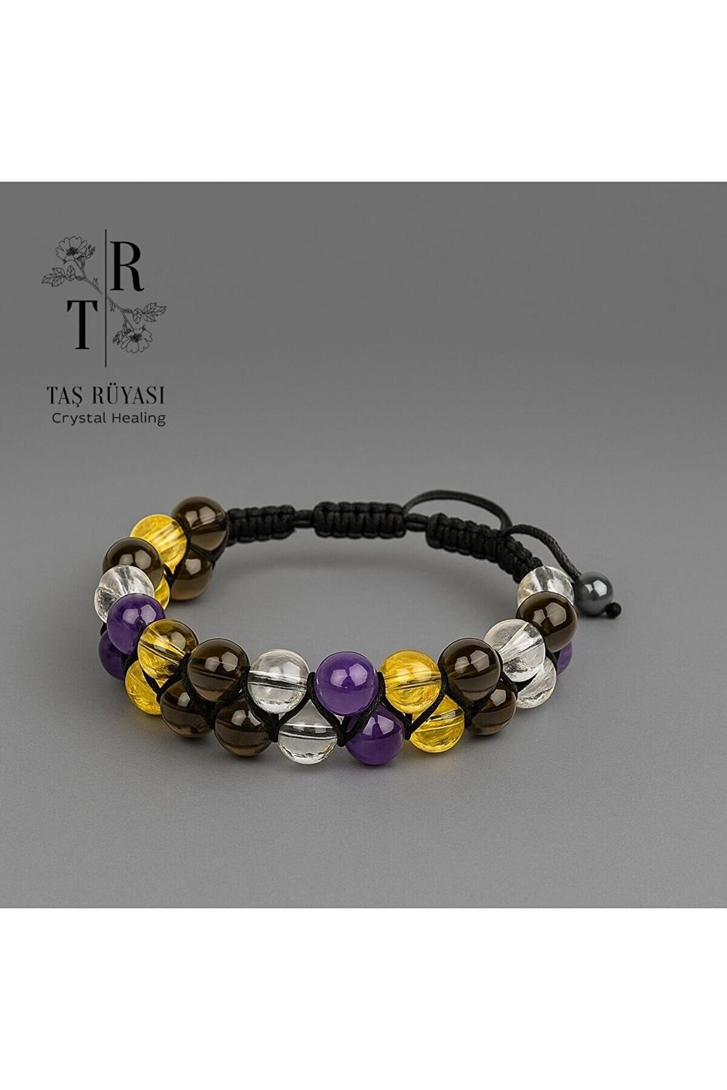 TAŞ RÜYASI Ametist Sitrin Dumanlı Kuvars Kristal Kuvars Örme Bileklik 8 Mm