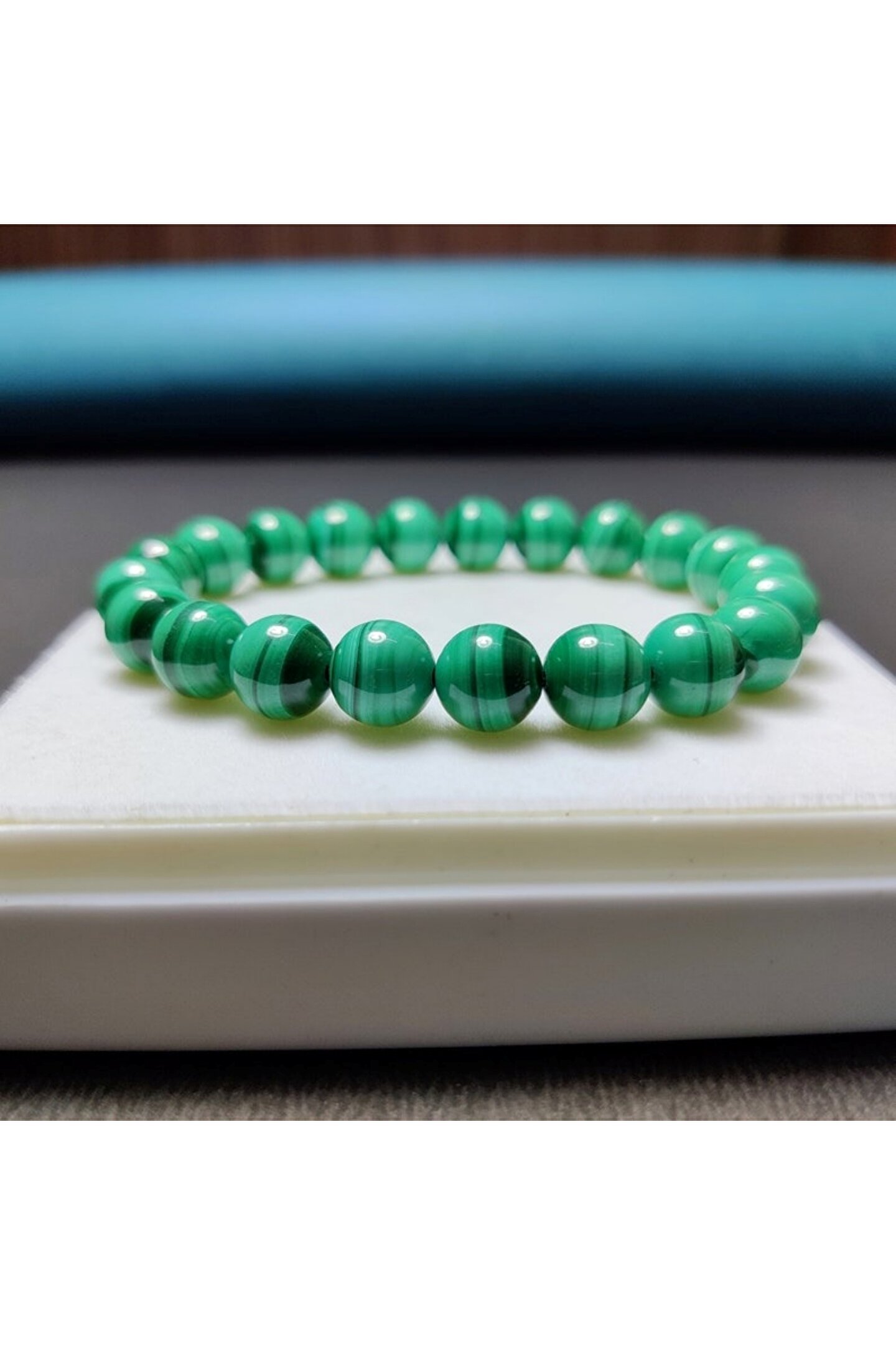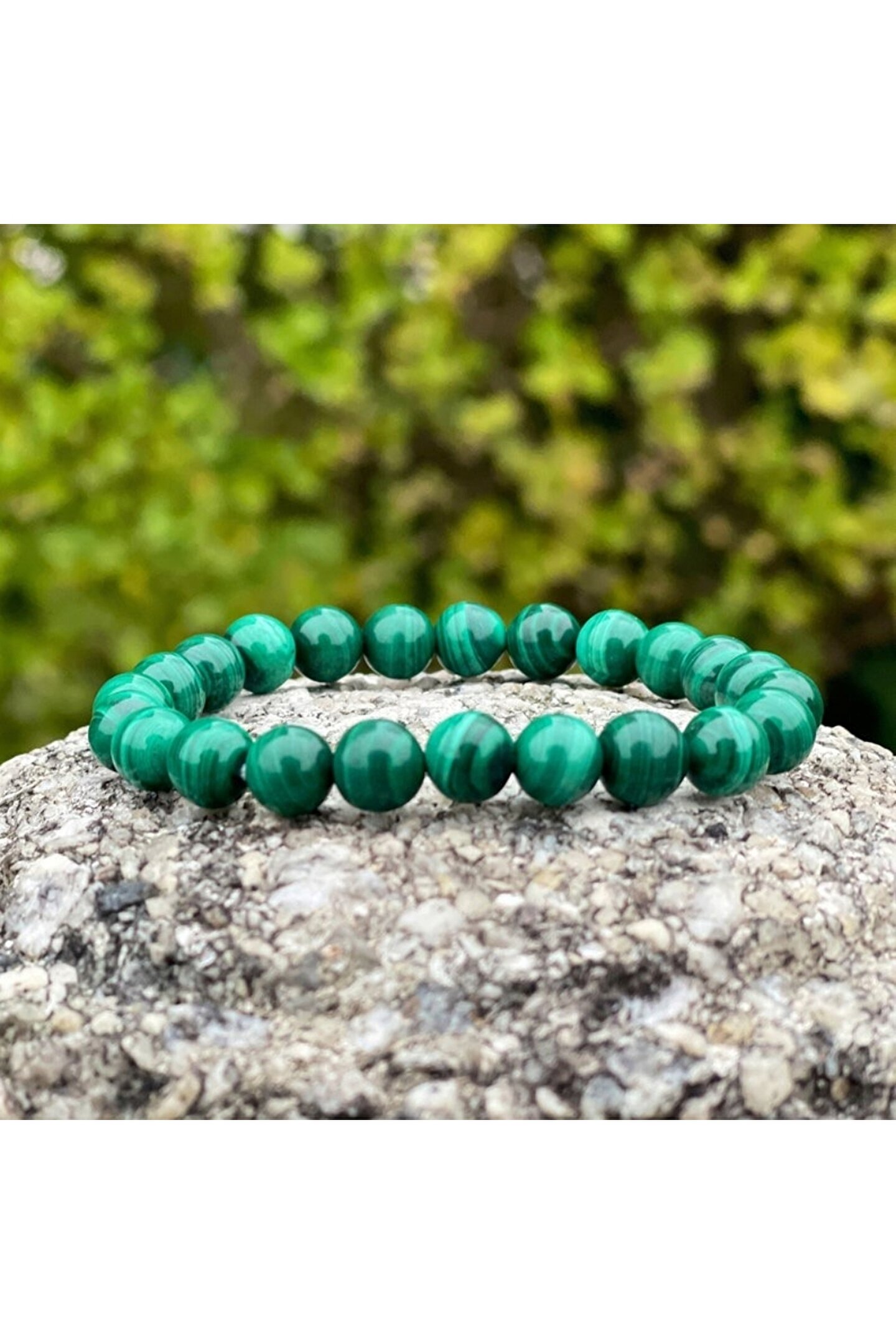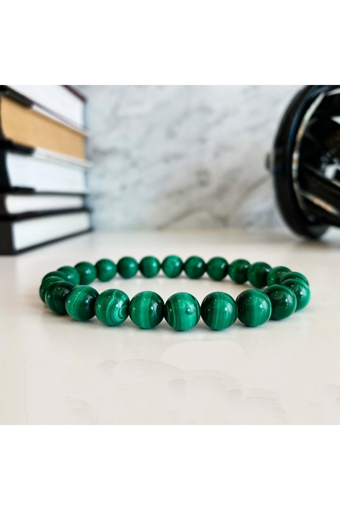 Doğal Malahit taşı kullanılarak üretilmiş, her bir bileklik benzersiz ve otantik bir görünüm sunar; Malahit taşı, bileklikte kullanılan ana malzeme olarak seçilmiştir; bu sayede hem şıklığı hem de doğallığı bir arada yaşatır; Taşın doğal yapısı ve renk tonları, her cilt tonuna uyum sağlayarak zarif bir aksesuar deneyimi sunar; Malahit taşı, bileklikte kullanılan materyalin dayanıklılığını artırarak uzun süreli kullanım imkanı sağlar;
