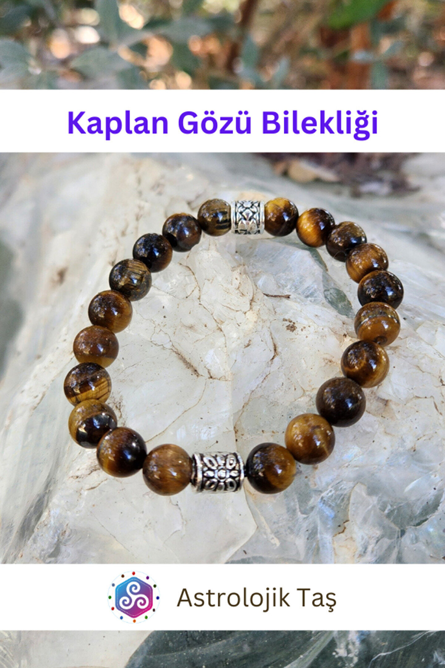 Tasarım Doğal Taş Kaplan Gözü Bilekliği - Koruma -güç -cesaret - Ticari Başarı