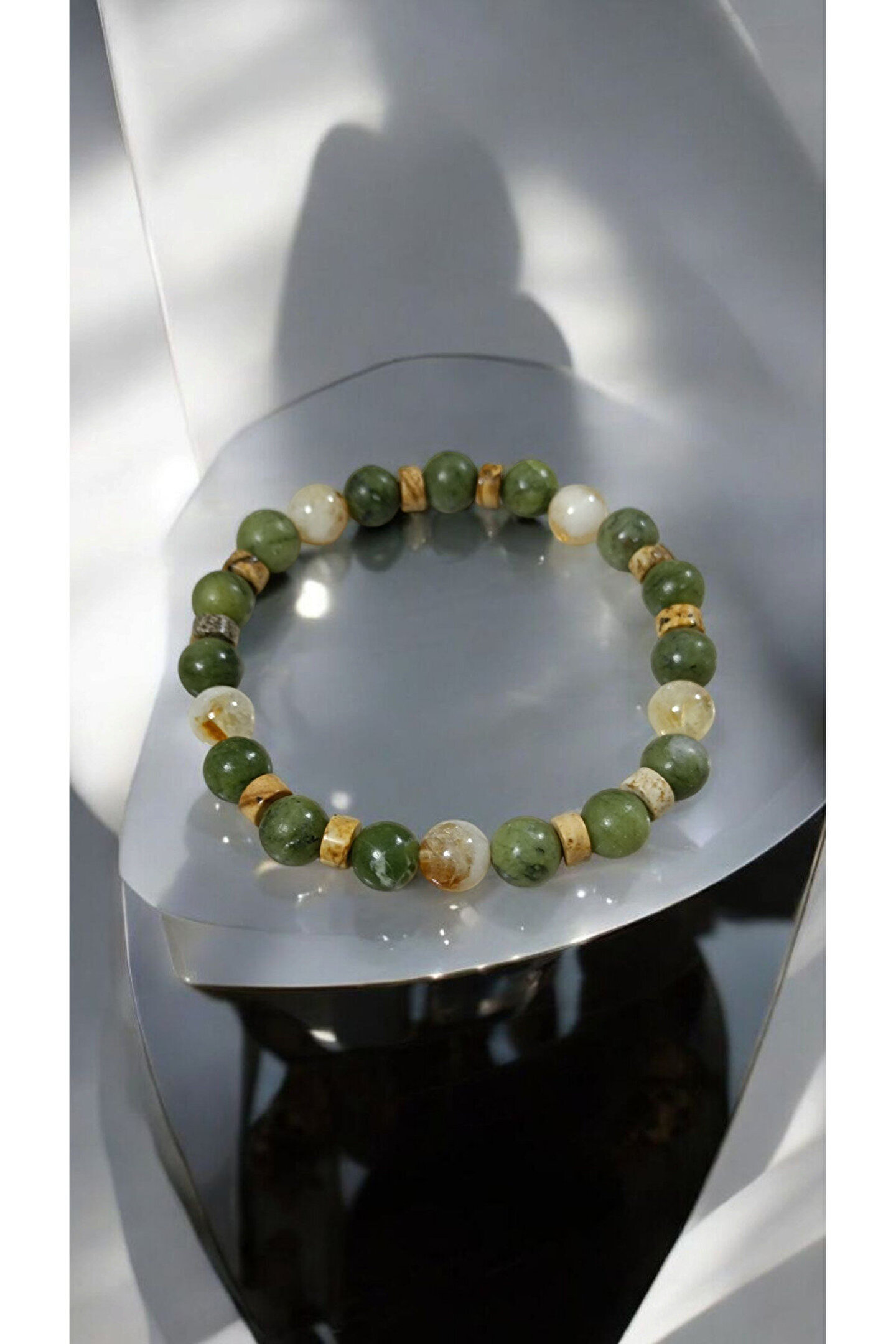 - Kanada Yeşim Taşı ve Sitrin bilekliği, hem şıklığı hem de enerjik özellikleriyle dikkat çeker.; - Unisex tasarımı sayesinde herkes tarafından rahatlıkla kullanılabilir; cinsiyet ayrımı gözetmez.; - Doğal taş kullanımıyla benzersiz bir dokunuş sunar ve her bileklik benzersizdir.; - Yetişkinlerin tercihi olan bu bileklik, günlük kullanım için idealdir ve stil sahibi görünümünüzü tamamlar.; -%100 doğal taşlarla tasarlanmıştır -Kanada yeşim taşı , şans para ve manevi değerlerle ilişkilidir -Sitrin , cesaret ve güç duygusunu artırarak ruhsal sağlığı destekler , pozitif düşünceleri teşvik ettiği ve bolluk enerjisini çektiği kabul edilir