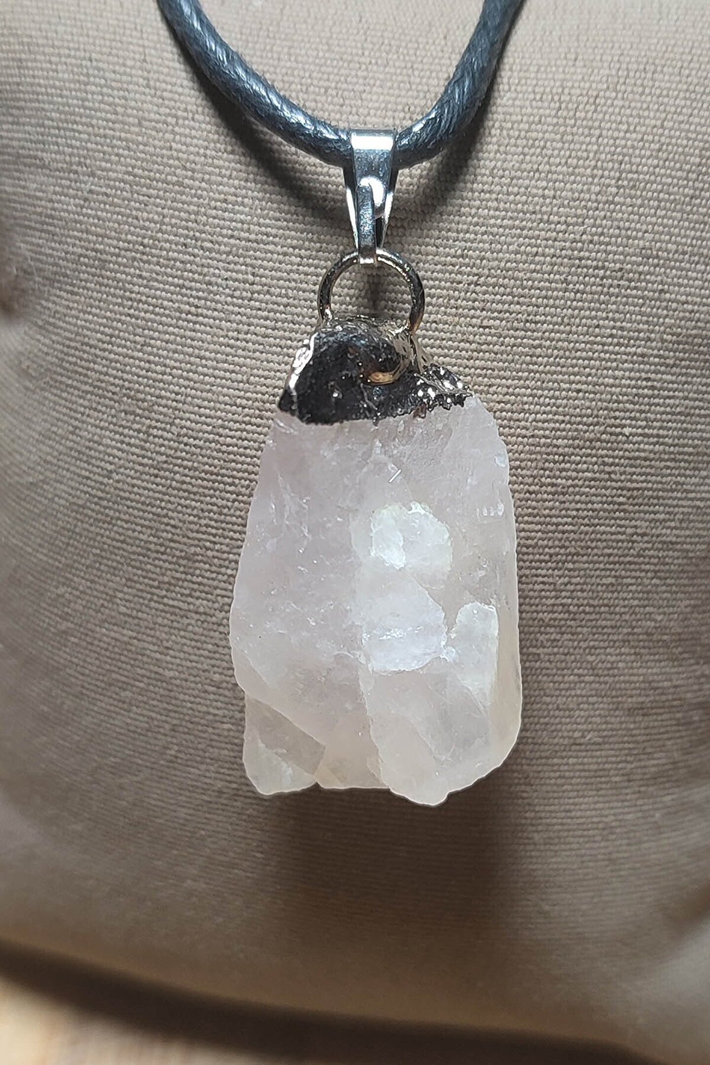 - Doğal taş kullanımı sayesinde her kolye benzersiz ve otantik bir görünüm sunar; - Pembe kuvars ham doğal taşı, zarif ve şık bir aksesuar seçeneği olarak öne çıkar; - Taş materyali ile hem dayanıklılık hem de estetik bir parlaklık sağlar;