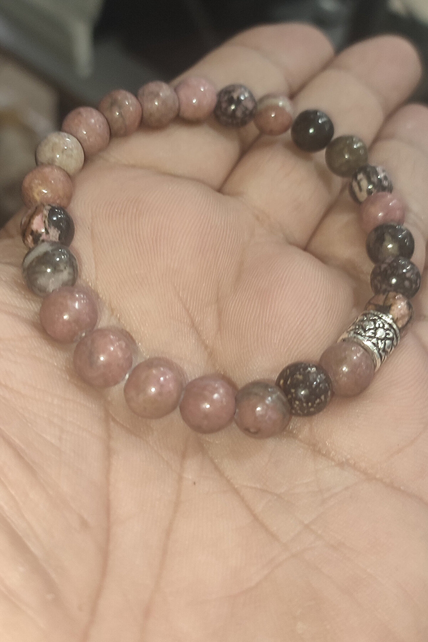Doğal taşı sevenler için ideal bir aksesuar olan bu bileklik, şıklığınızı tamamlayacak zarif bir dokunuş sunar; Rodonit taşı, benzersiz renk tonları ve desenleriyle dikkat çeker; her kıyafetle uyum sağlayarak stilinizi öne çıkarır; 8 mm boyutundaki bu bileklik, hem günlük kullanım hem de özel günler için mükemmel bir seçenektir; Doğal taş materyali sayesinde her bileklik benzersizdir ve her biri farklı bir hikaye anlatır;